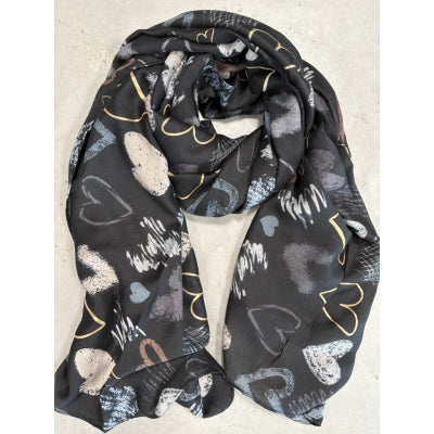 Let og luftigt tørklæde med et dekorativt hjerteprint. Perfekt til at tilføje et romantisk touch...