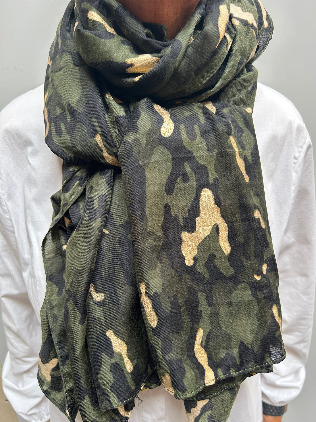 Lækkert, ensfarvet tørklæde i tynd bomuldskvalitet med rå kanter, der tilføjer et afslappet og moderne...