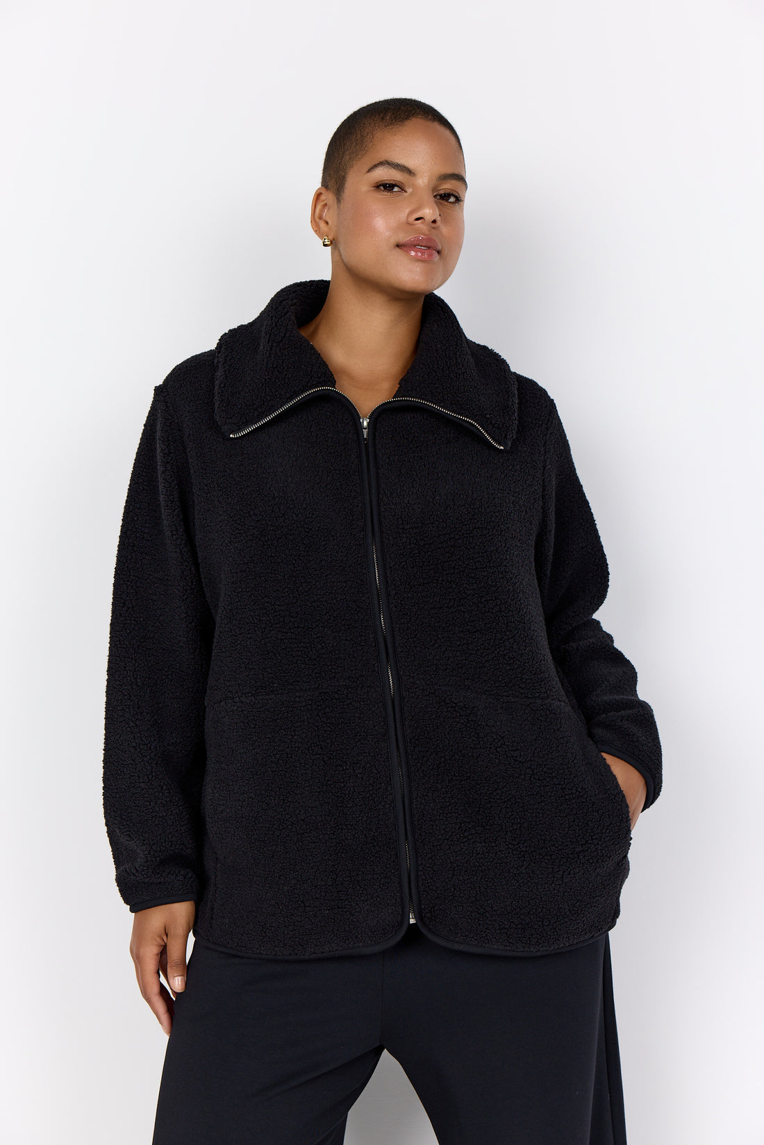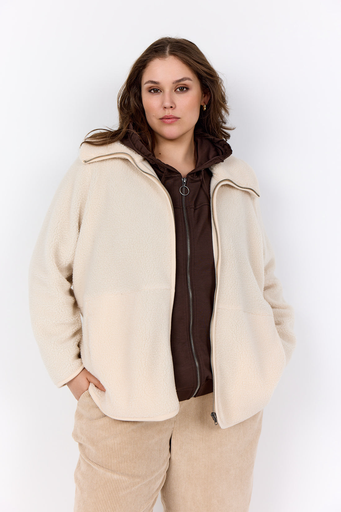 Cardigan/Jakken er fremstillet af 100 % genbrugspolyester. Den har en blød tekstur, bred krave, lynlåslukning...