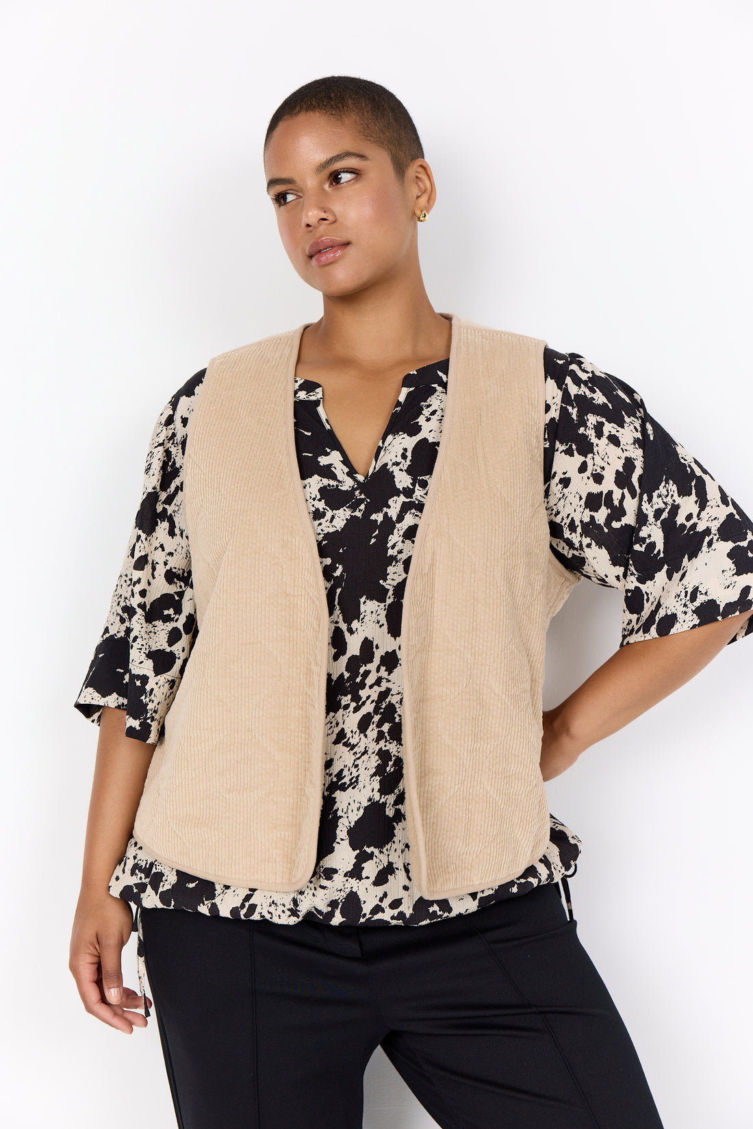 Stilfuld vest fremstillet af 50 % genanvendt viskose, 48 % LENZING™ ECOVERO™ viskose og 2...