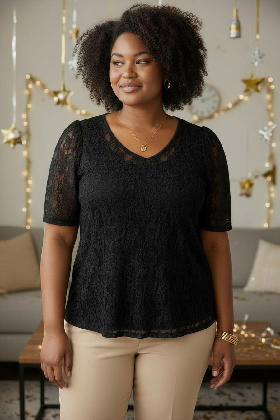 Bluse er fremstillet af 95% polyester, 5% elastan. Denne elegante bluse har korte ærmer, pailletdetaljer,...