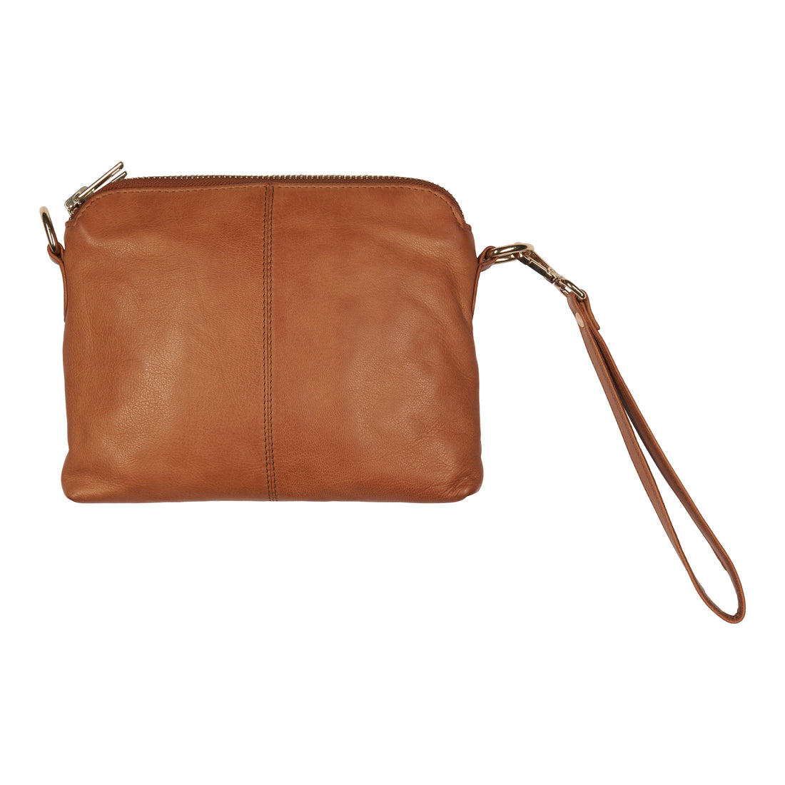 Crossbody clutch i læder med 2 rum med lynlåslukning foroven. Tasken har en justerbar og...