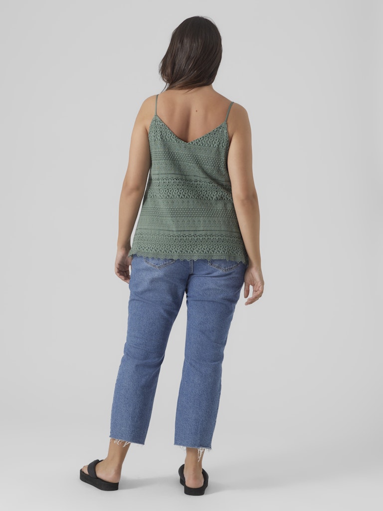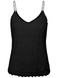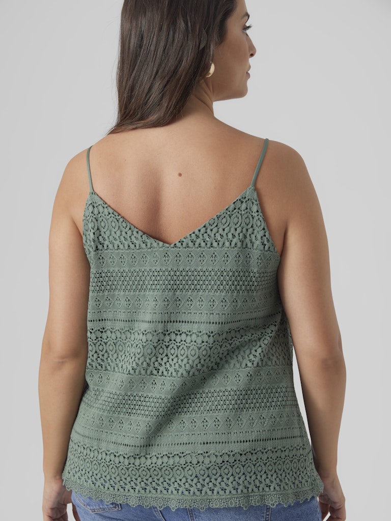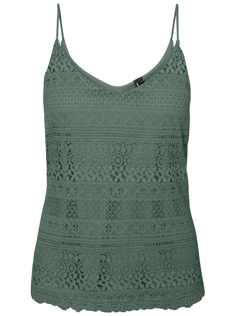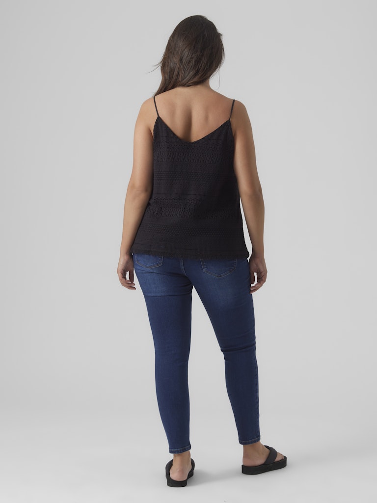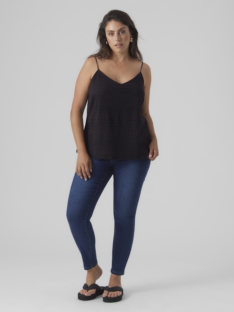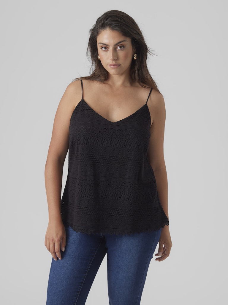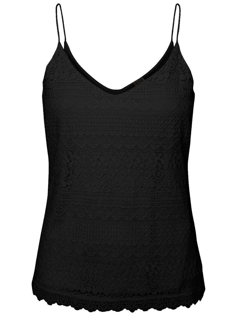 Flot blondetop i en behagelig og let kvalitet med tynde stropper. Den fine blonde er gennemtænkt i sit mønster, og den bløde underdel gør toppen både behagelig og nem at bruge til det hele. Toppen har en god længde og en afslappet pasform, der falder pænt.