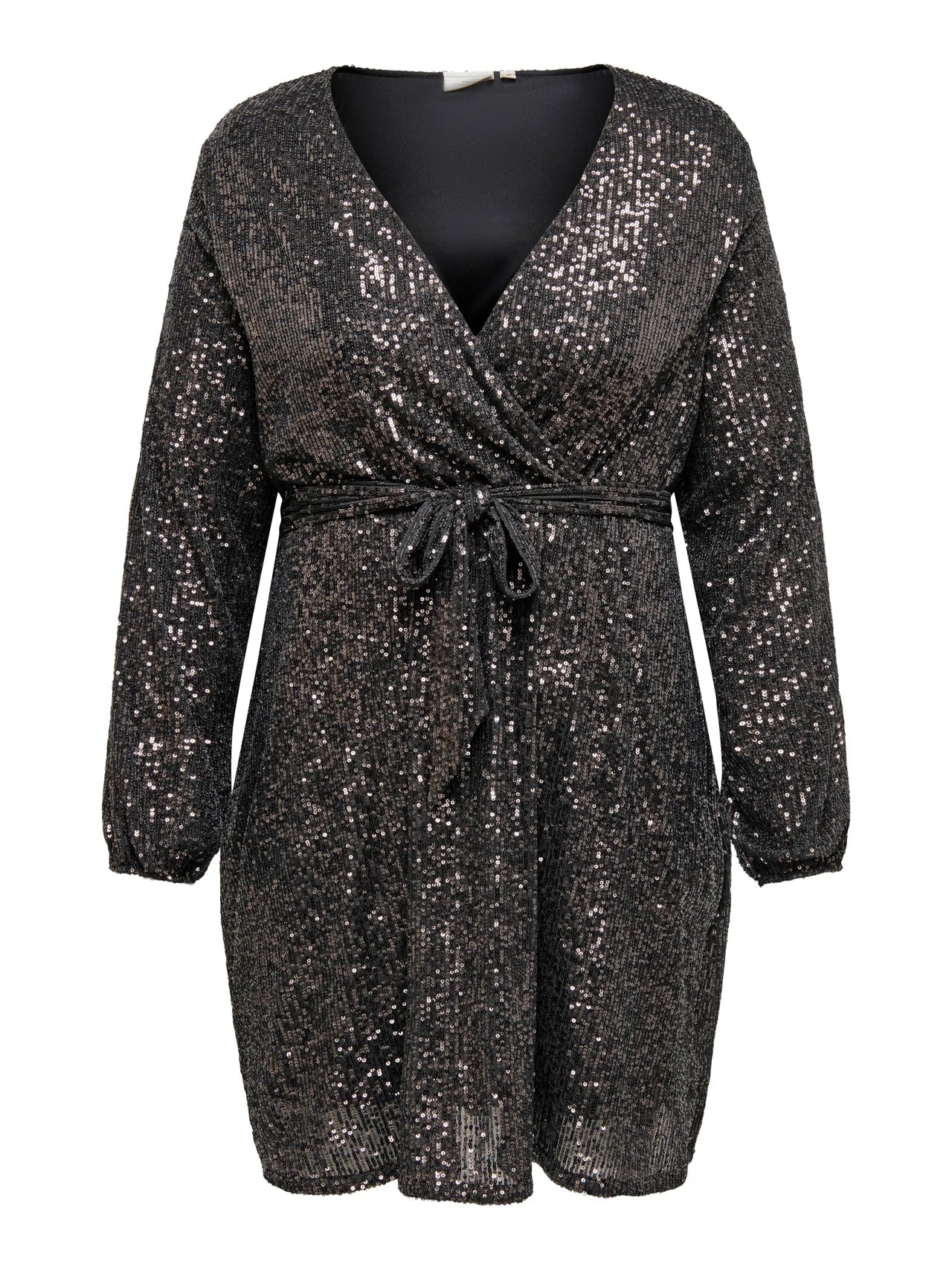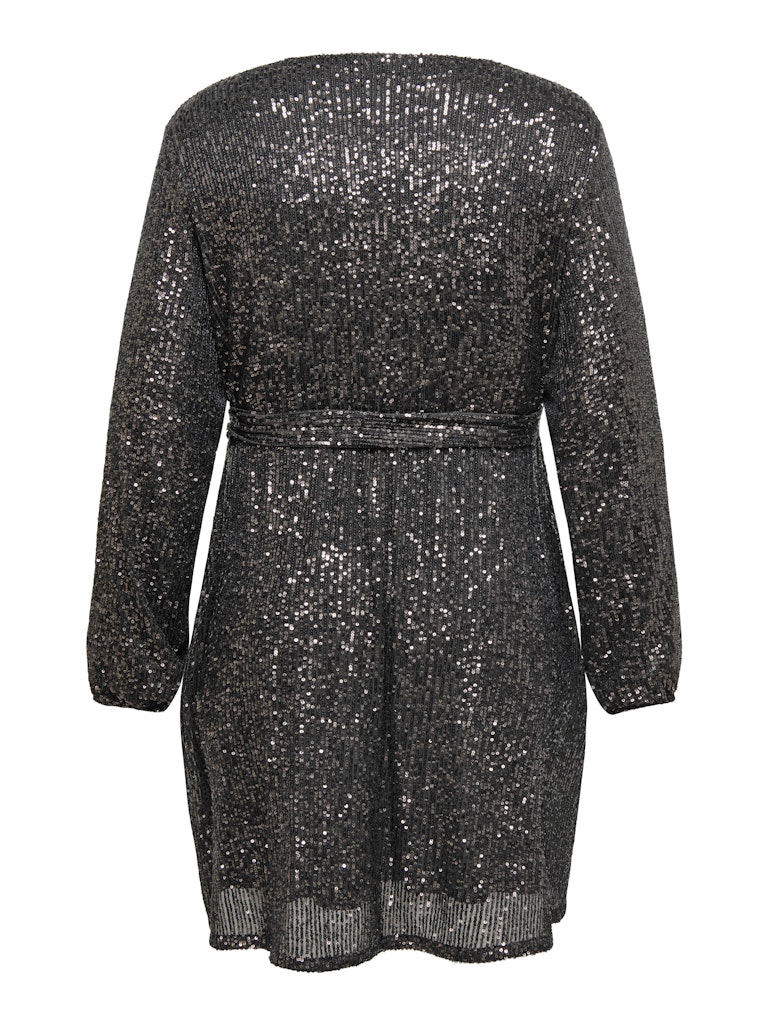 - Detaljer : Bælte i taljen, Bælte medfølger, Bæltestropper, Pailletter