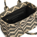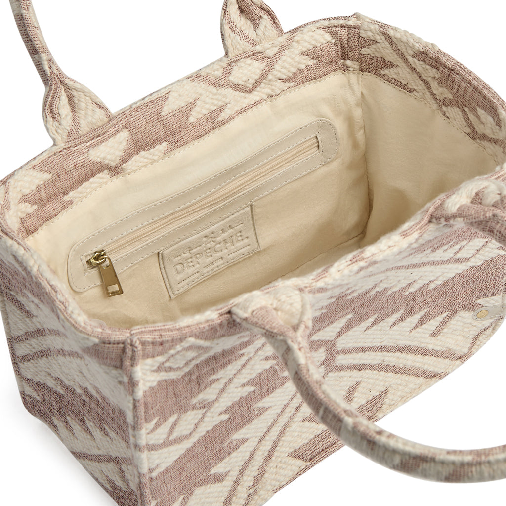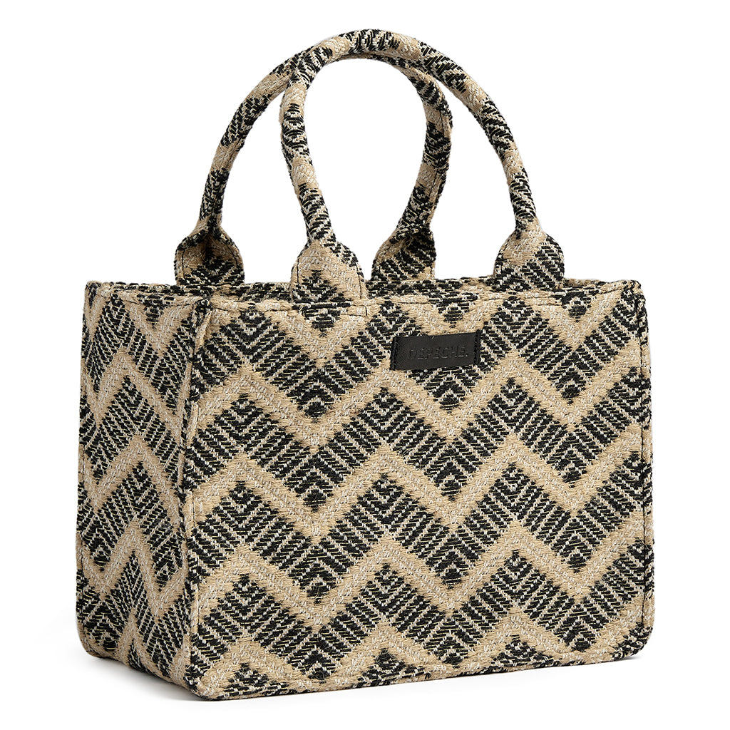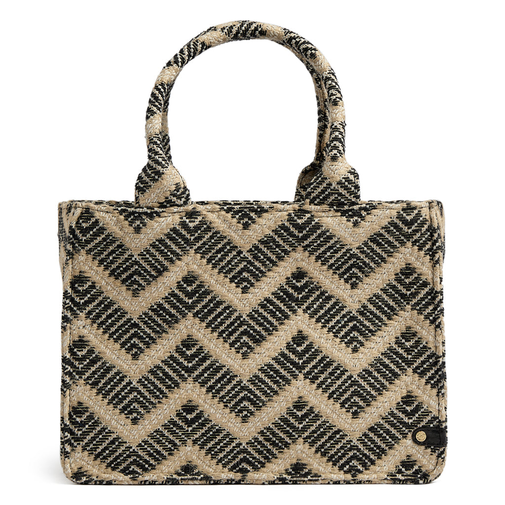 Denne lille shopper bringer modig elegance ind i din garderobe med sit fortryllende design og unikke mønster. Det iøjnefaldende mønster tilfører et strejf af eksklusivitet og elegance til enhver lejlighed.
