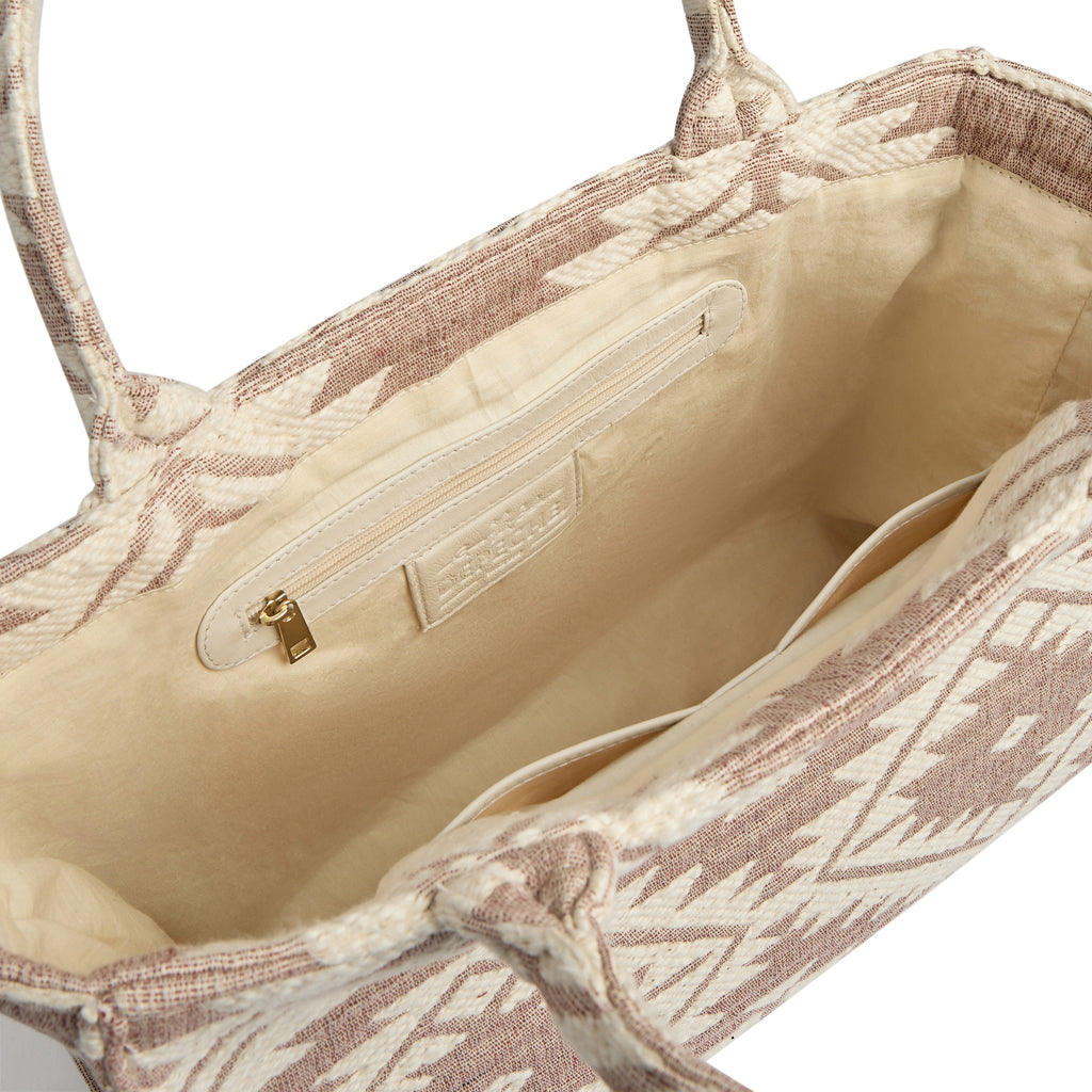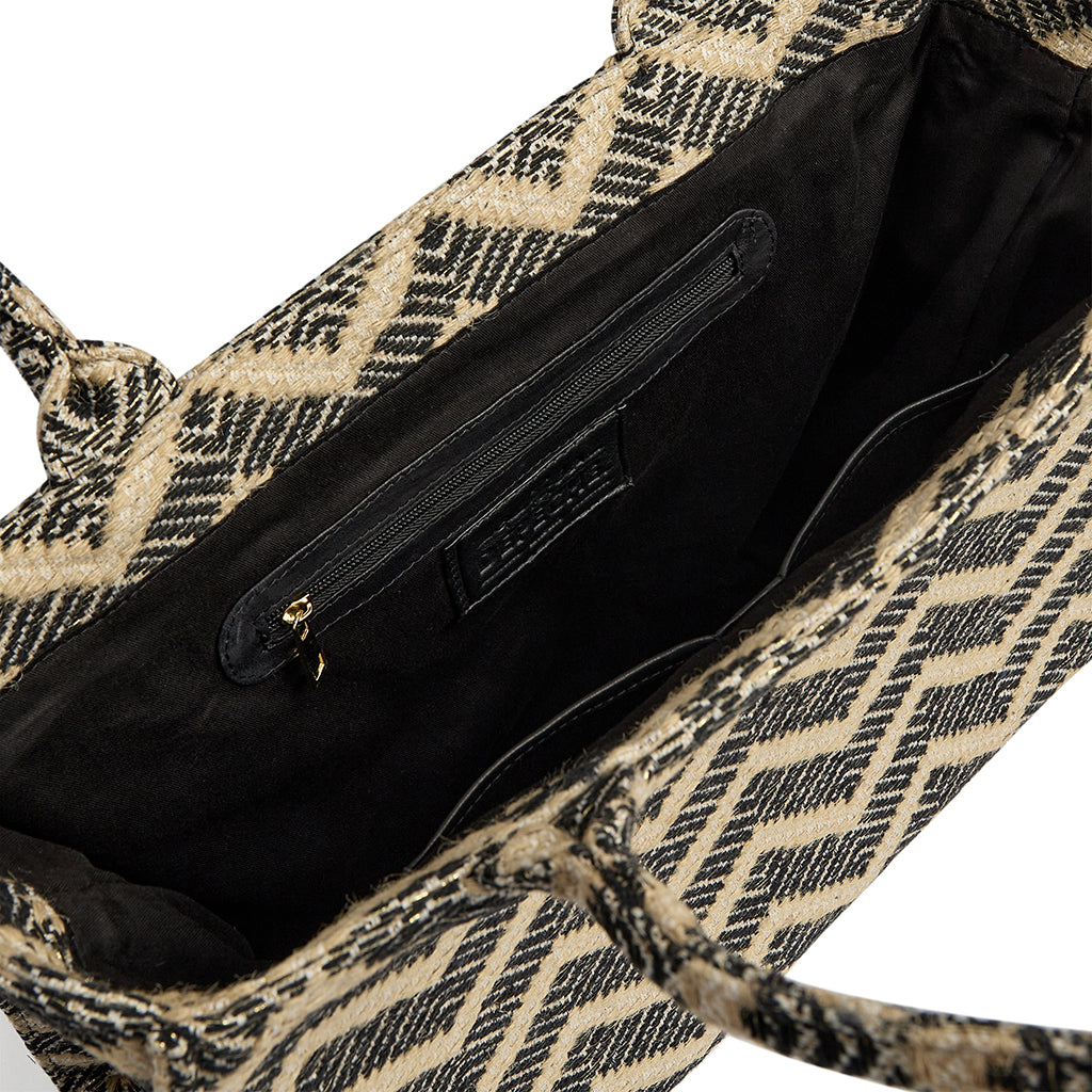 Denne store shopper emmer af luksus og elegance med sit eksklusive mønster og sofistikerede design. Det fortryllende mønster tilfører tasken en fornem følelse af eksklusivitet og skaber en uimodståelig udstråling.