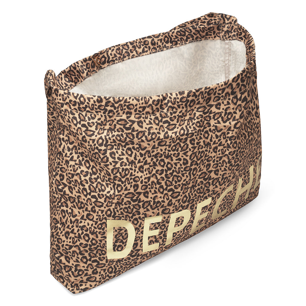 Denne smukke og trendy shopper taske kombinerer et moderne leopardprint med praktisk funktionalitet. Tasken er dekoreret med det fine leopardmønster og har et guldpræget DEPECHE-logo på forsiden. Shopperen er ideel til at give dit hverdagsoutfit et trendy løft, uanset om du bruger den til dine daglige ting på arbejdet, en shoppetur eller indkøb. Tasken lukkes med en magnetlukning i toppen, som gør det nemt at komme til indholdet.