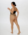 Disse specialdesignede strømpebukser er skabt med en pasform, der giver ekstra komfort. Med en dybere talje, bredere lårvidde og en fleksibel linning sikrer de en behagelig oplevelse hele dagen. De flade sømme og lette støtte i benene giver en glat og behagelig fornemmelse. Perfekte som et let og elegant tilbehør til enhver anledning. Kun en enkelt søm både for og bag.