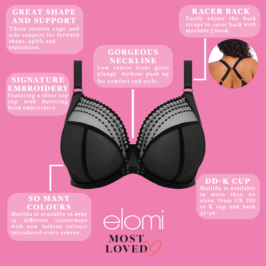 Elomi BH'en er designet med fokus på både stil og støtte, hvilket gør den ideel til kvinder med kurver. Denne BH har et elegant design med gennemsigtige paneler og flotte detaljer, der skaber et feminint udtryk. Den er lavet med bøjle, som giver optimal støtte og løft. Skulderstropperne er justerbare for en perfekt pasform, og de brede sidepaneler sikrer ekstra komfort hele dagen.