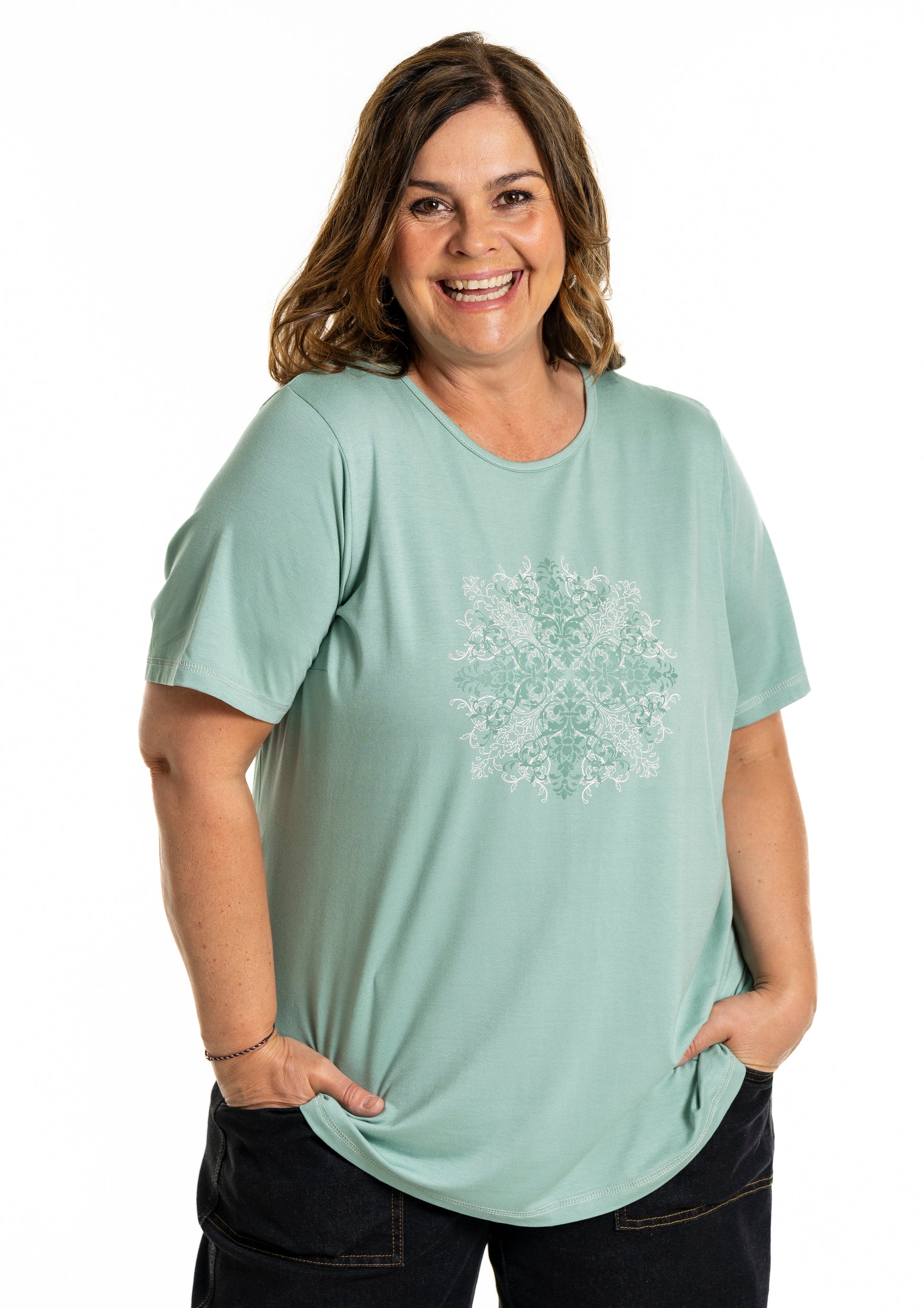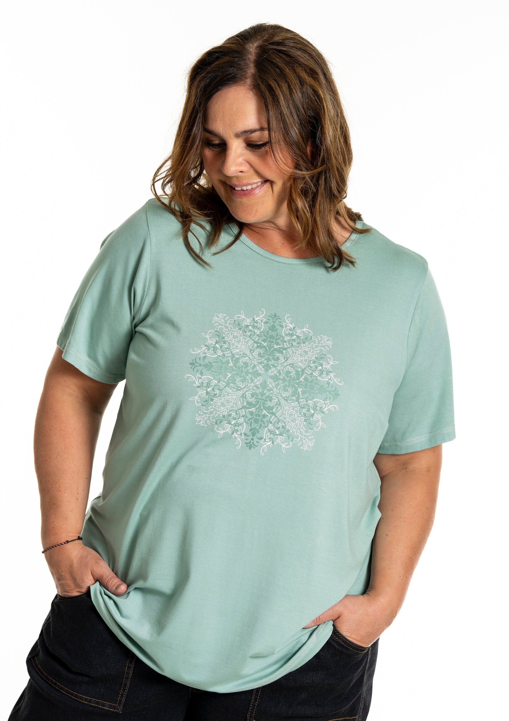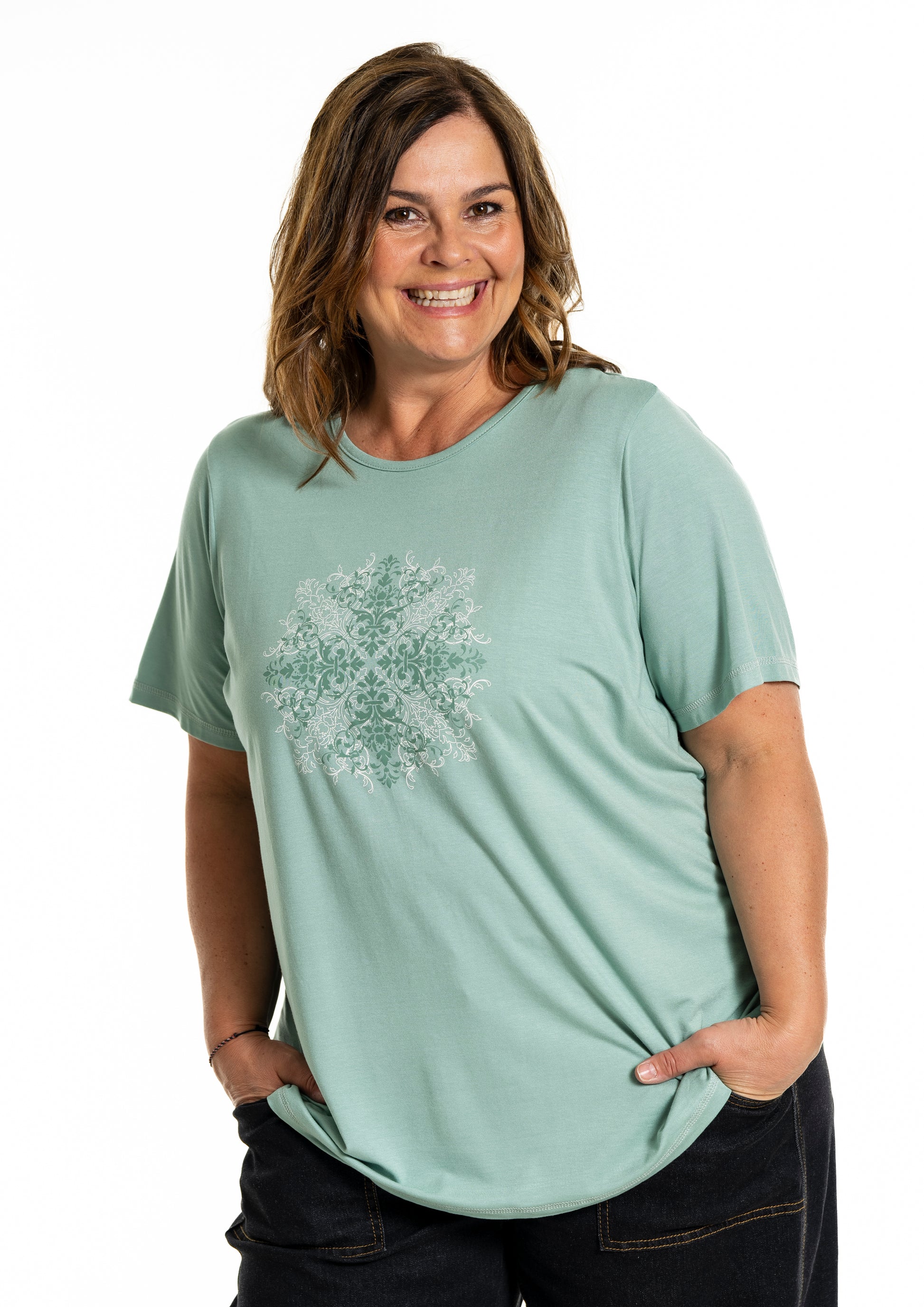 Denne T-shirt fra Gozzip kombinerer komfort og stil med et flot mønstret print på fronten, der tilføjer et unikt touch. Lavet i et blødt materiale med en afslappet pasform og korte ærmer, er den ideel til både hverdag og afslappede anledninger. Let at style med dine yndlingsbukser eller en nederdel.