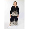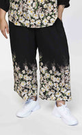Bukserne er designet med elastisk talje og brede ben, som giver et komfortabelt og anvendeligt snit. Længden stopper midt på læggen og skaber et let og luftigt udtryk.
