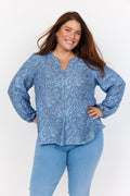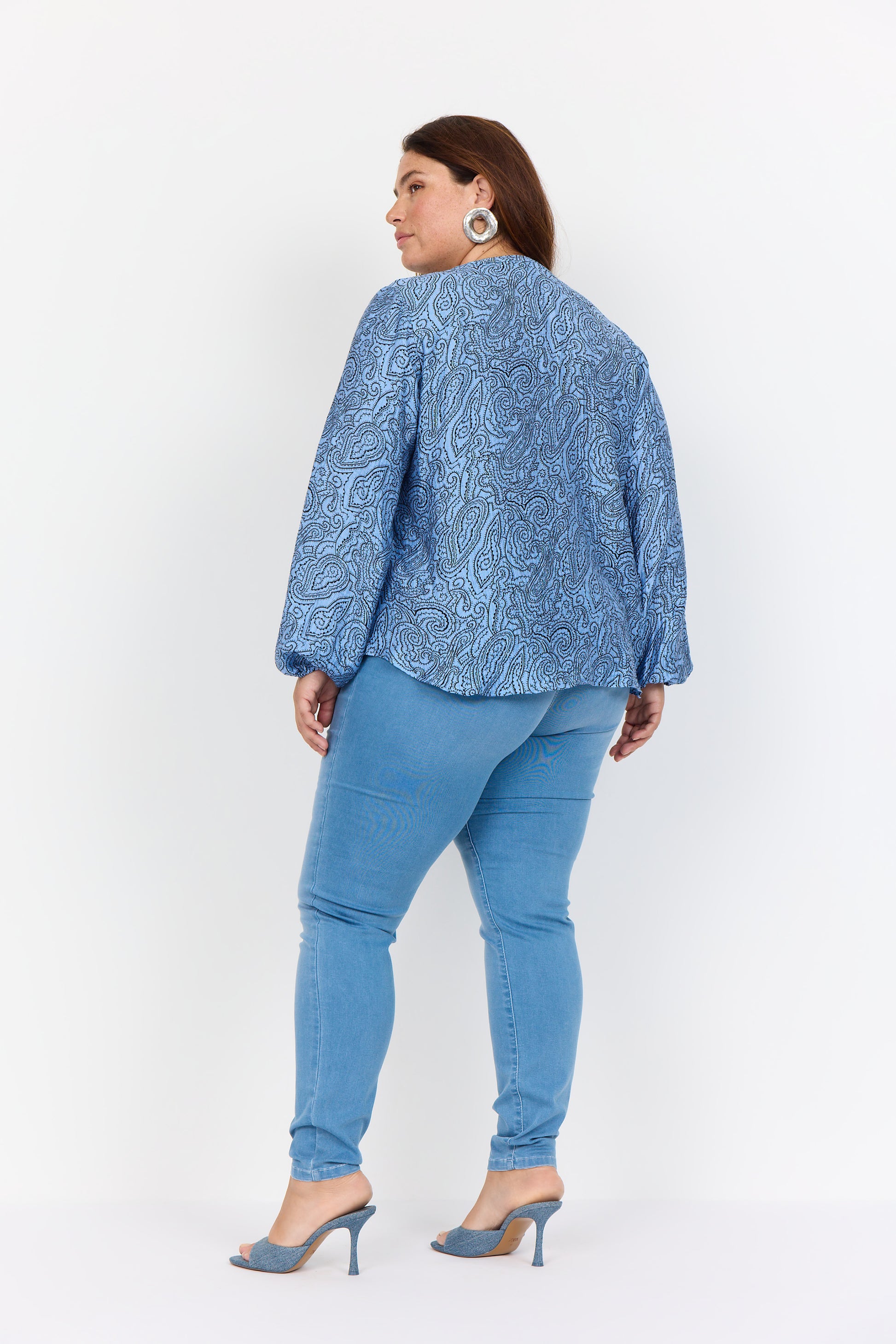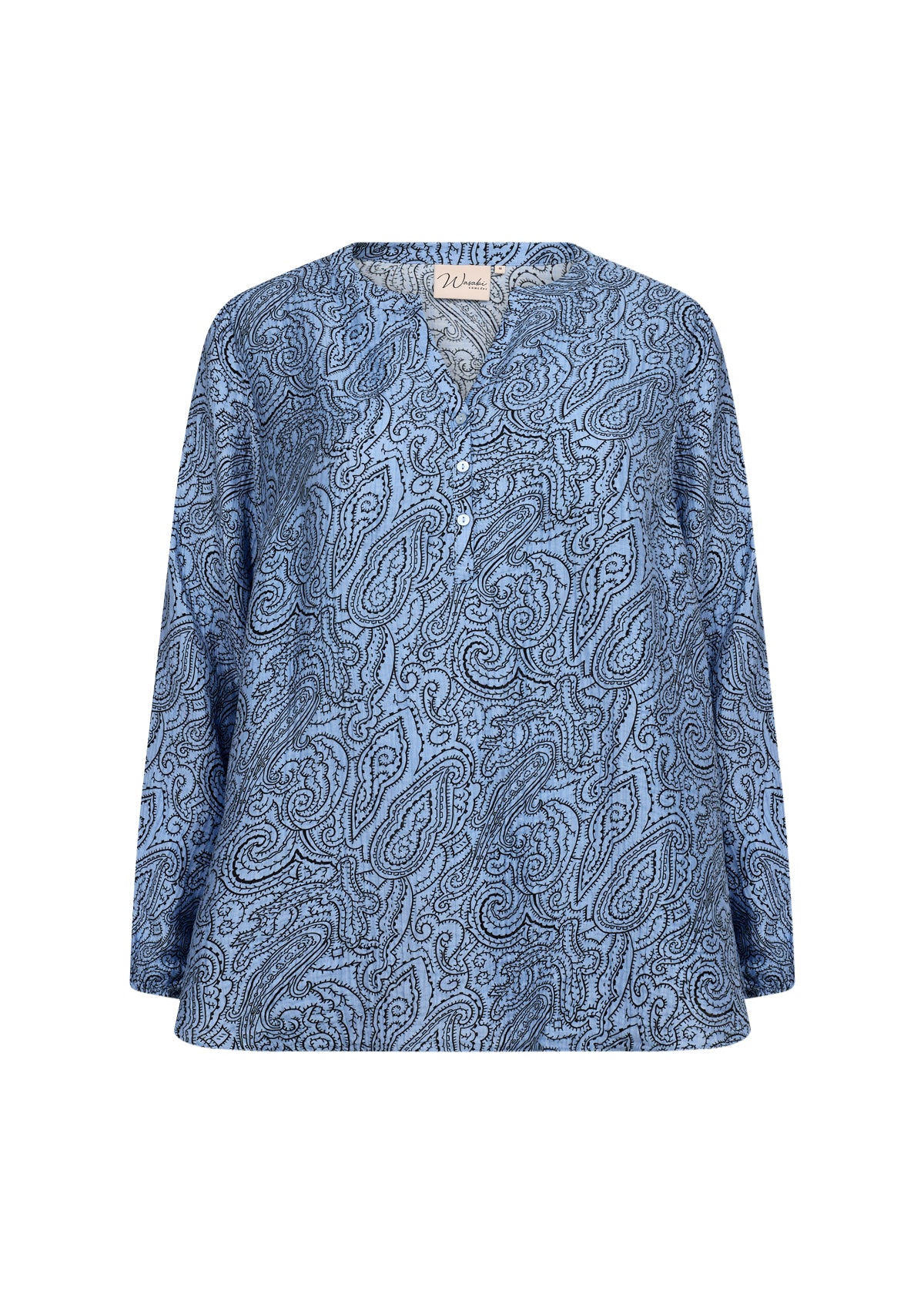 Denne bluse er fremstillet i let og behagelig viskose, hvilket gør den ideel til både hverdag og afslappede anledninger. Den blå paisley-mønster giver et elegant og moderne udtryk, mens den afslappede pasform sikrer komfort hele dagen. Blusen har en rund halsudskæring med knaplukning og lange ærmer med elastik, der giver et feminint touch. Perfekt at style med jeans eller en nederdel for et fuldendt look.