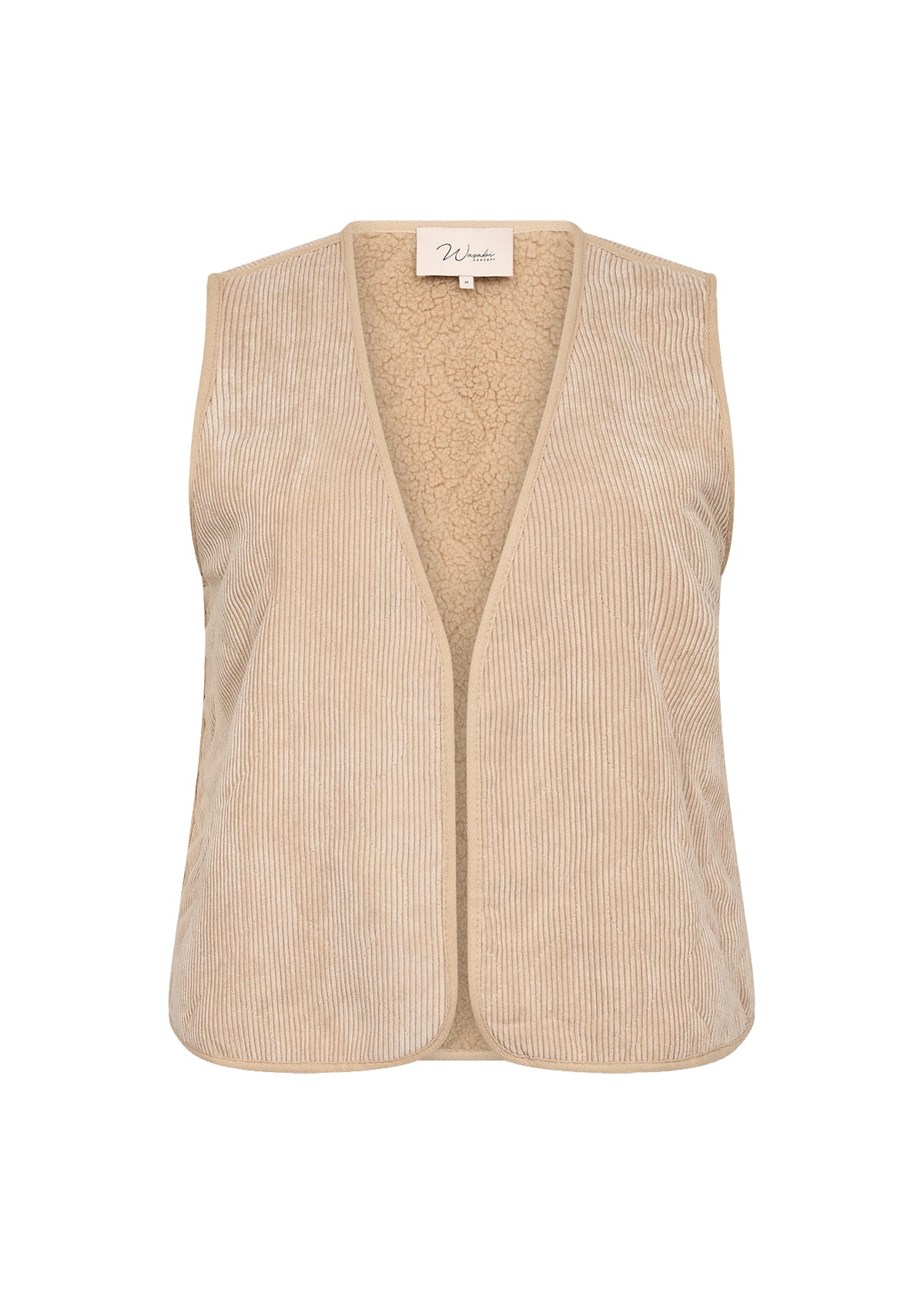 Vesten fremstillet af 90 % polyester og 10 % polyamid. Vesten har et ærmeløst design, quiltet fløjlstekstur og blødt sherpafor uden knapper. Sæt den sammen med en sprød skjorte eller en afslappet T-shirt for et behageligt og stilfuldt look.