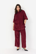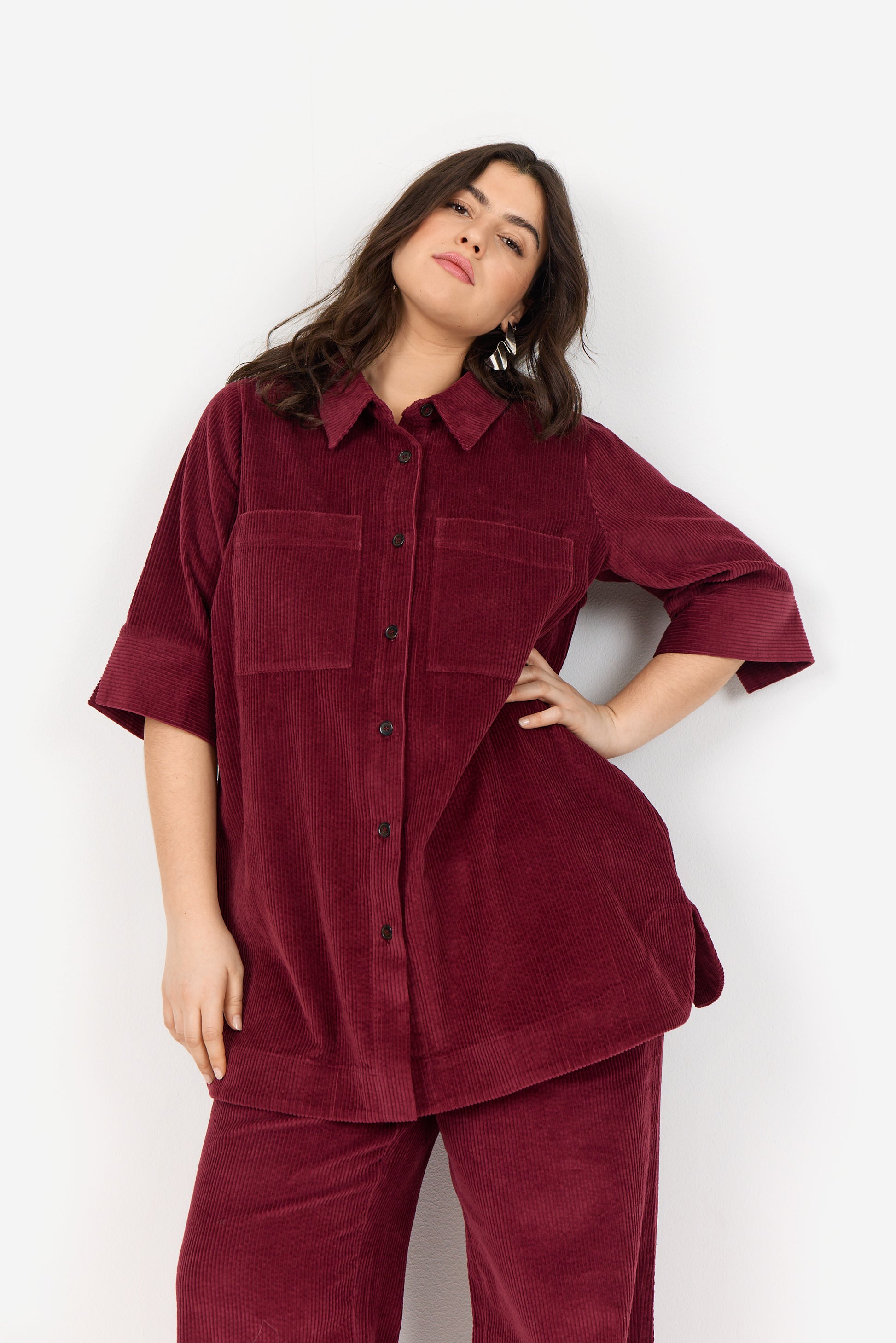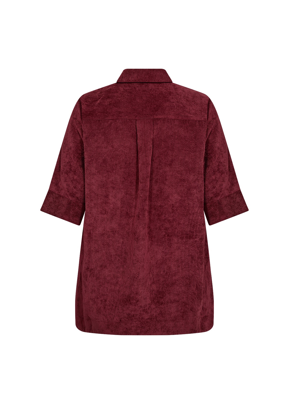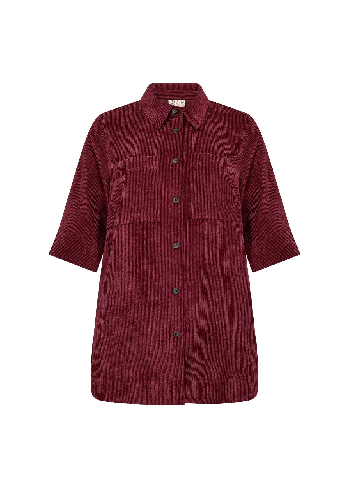 Skjorten er fremstillet af 90 % polyester og 10 % polyamid. Den har fløjlstekstur, korte ærmer, klassisk krave og knaplukning foran. Brug den sammen med jeans eller over en rullekrave for en afslappet stil.
