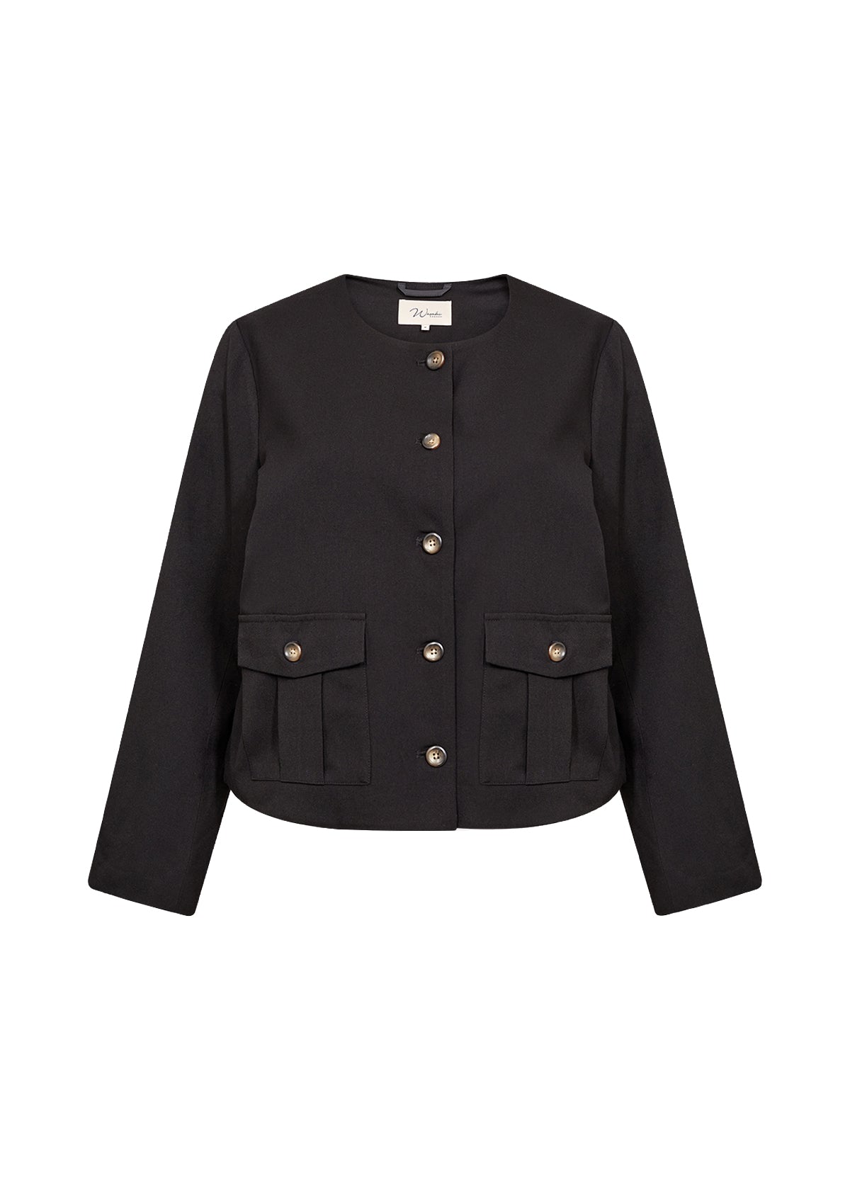 Smuk og elegant jakke med rund halsudskæring, knaplukning foran samt to klaplommer. Sæt den sammen med skræddersyede bukser for et elegant look eller jeans for et afslappet look.