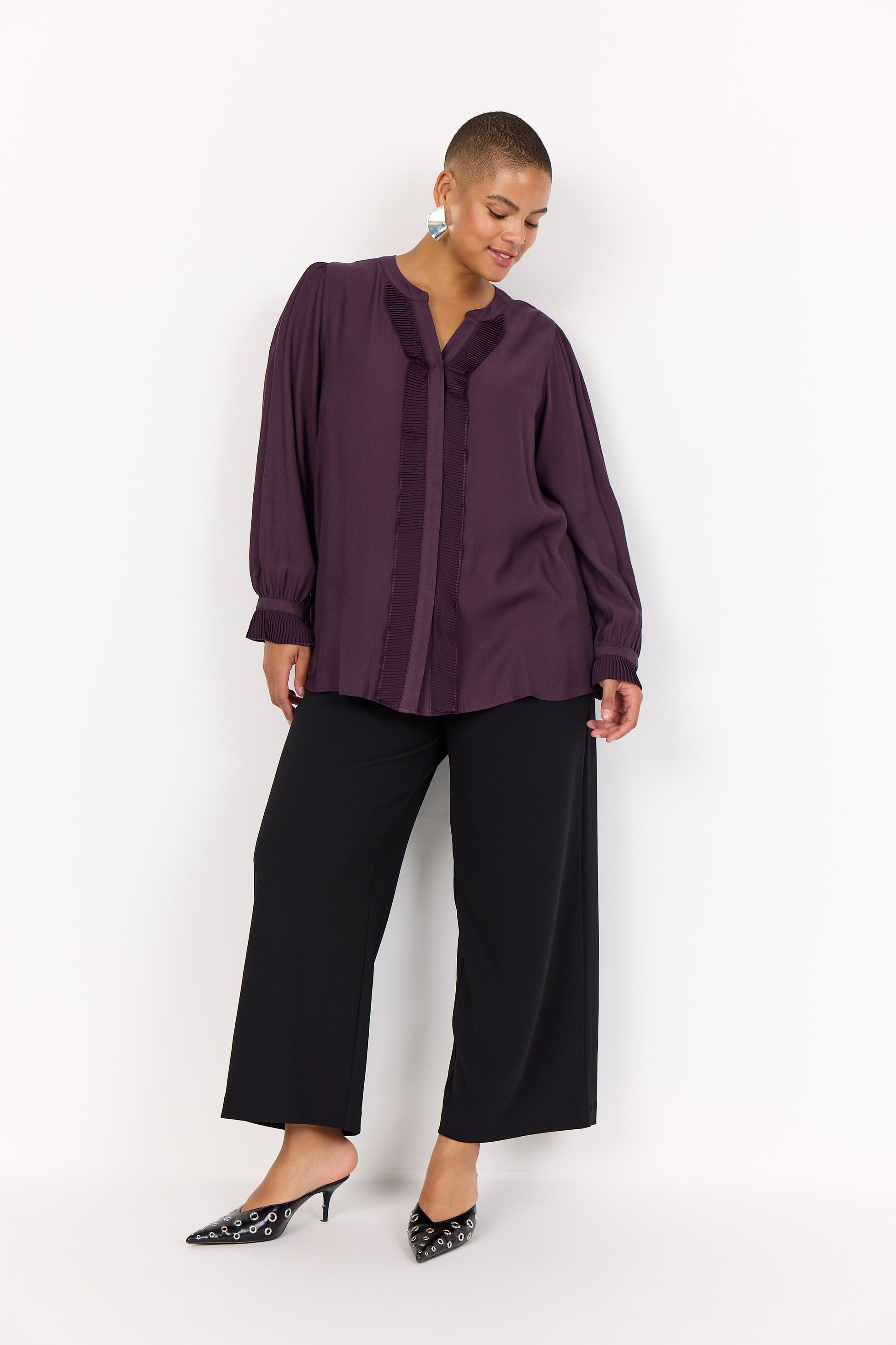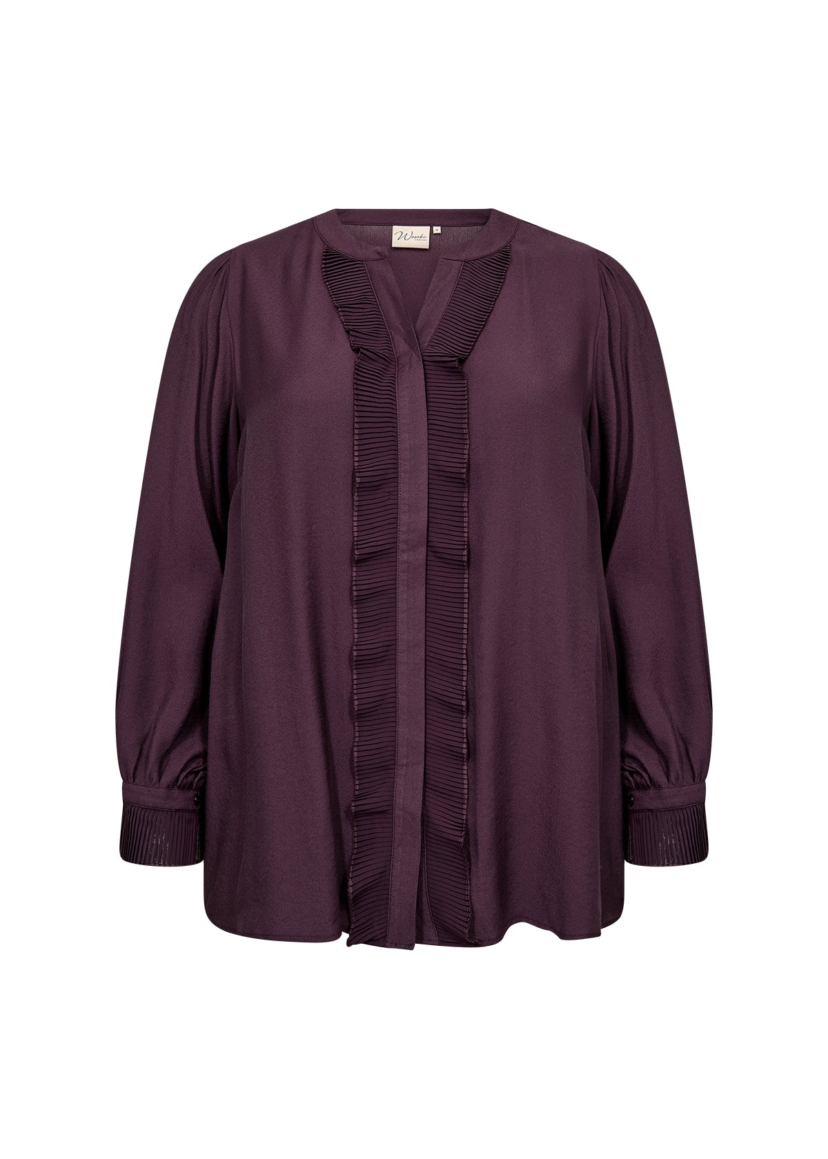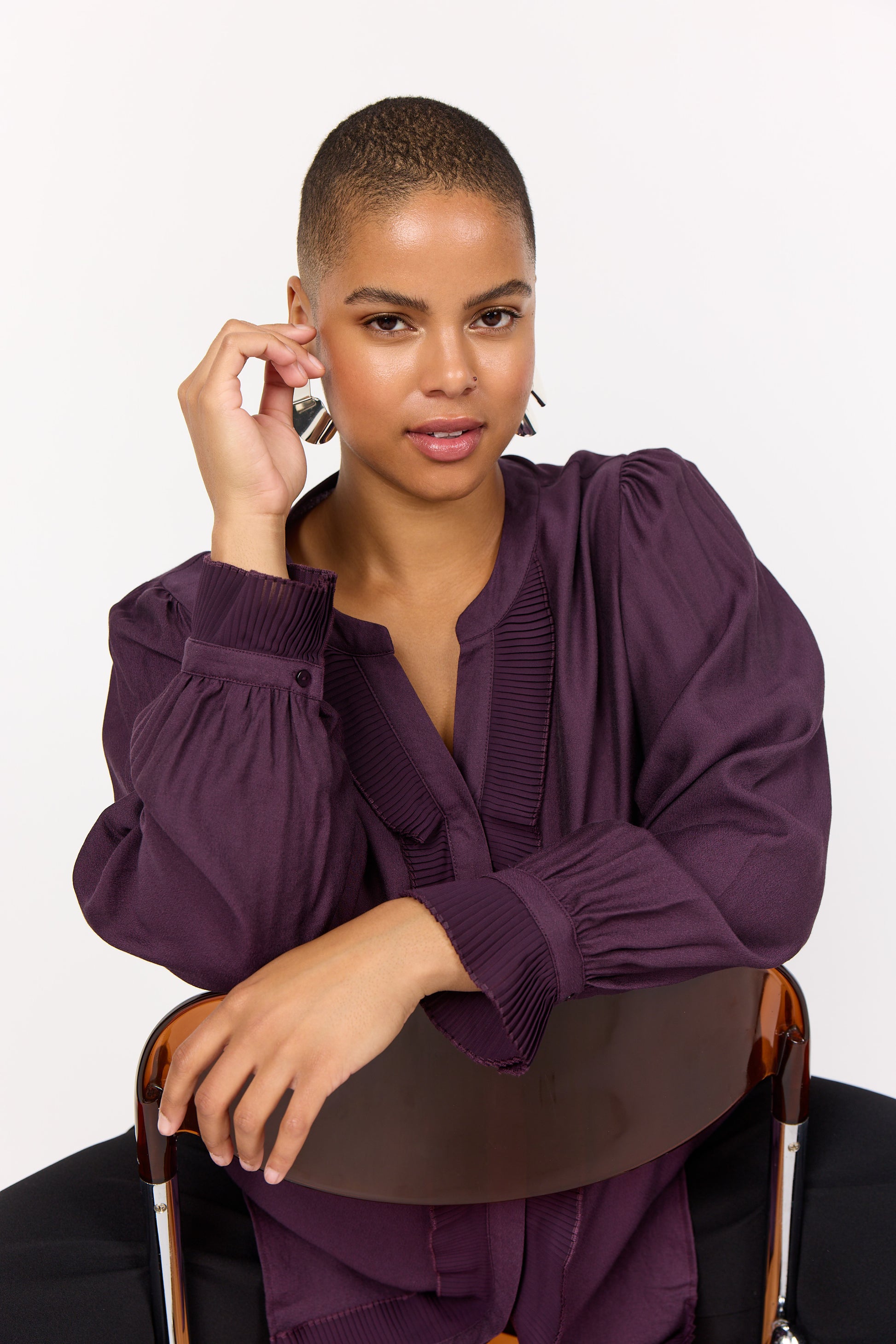 Bluse er fremstillet af 85% LENZING™ ECOVERO™ viskose og 15% nylon. Blusen har en diskret v-halsudskæring, plisserede detaljer og en afslappet pasform. Sæt den sammen med skræddersyede bukser eller denim for et elegant look.