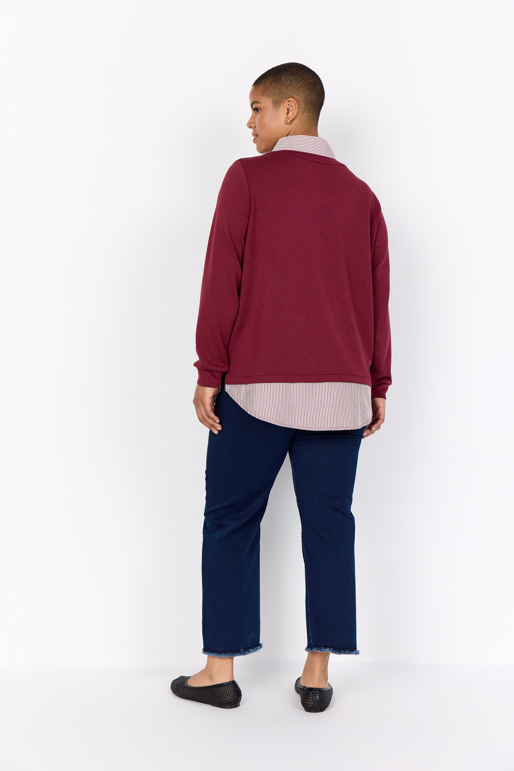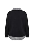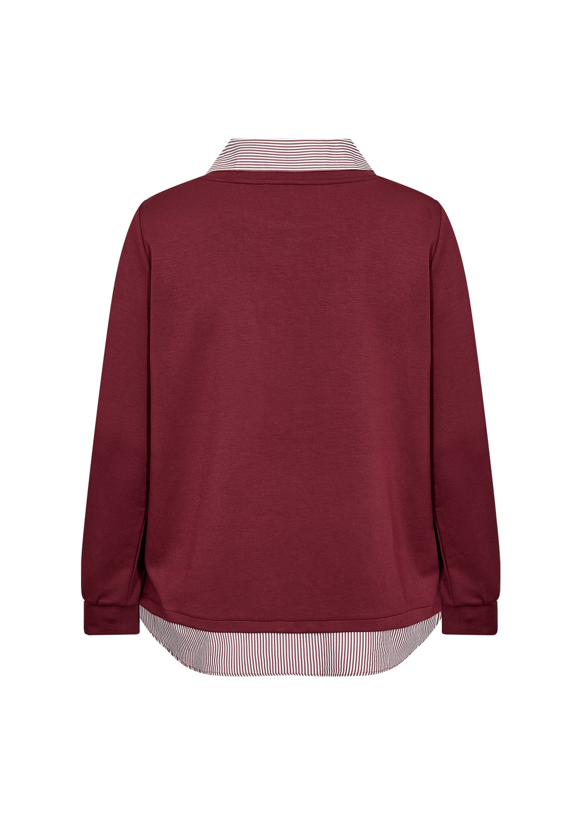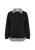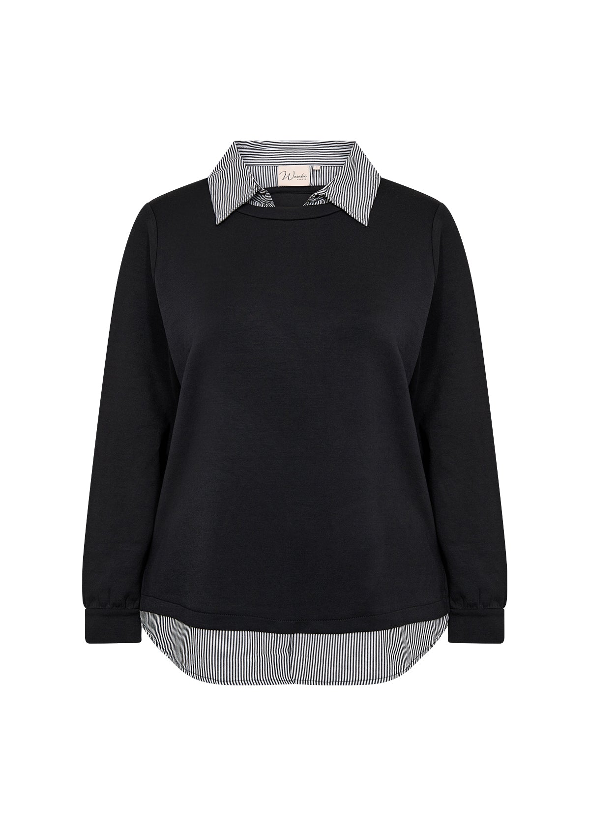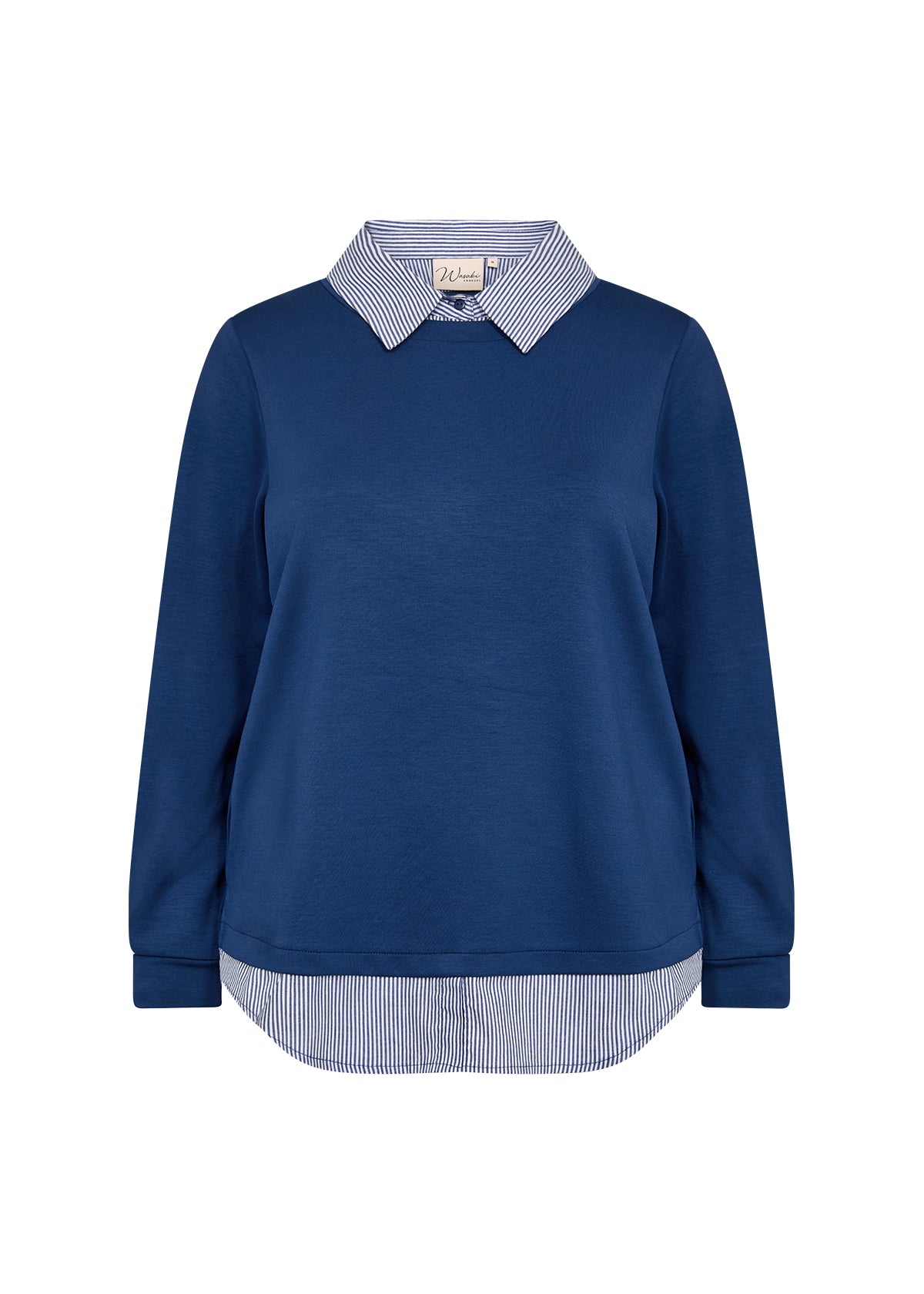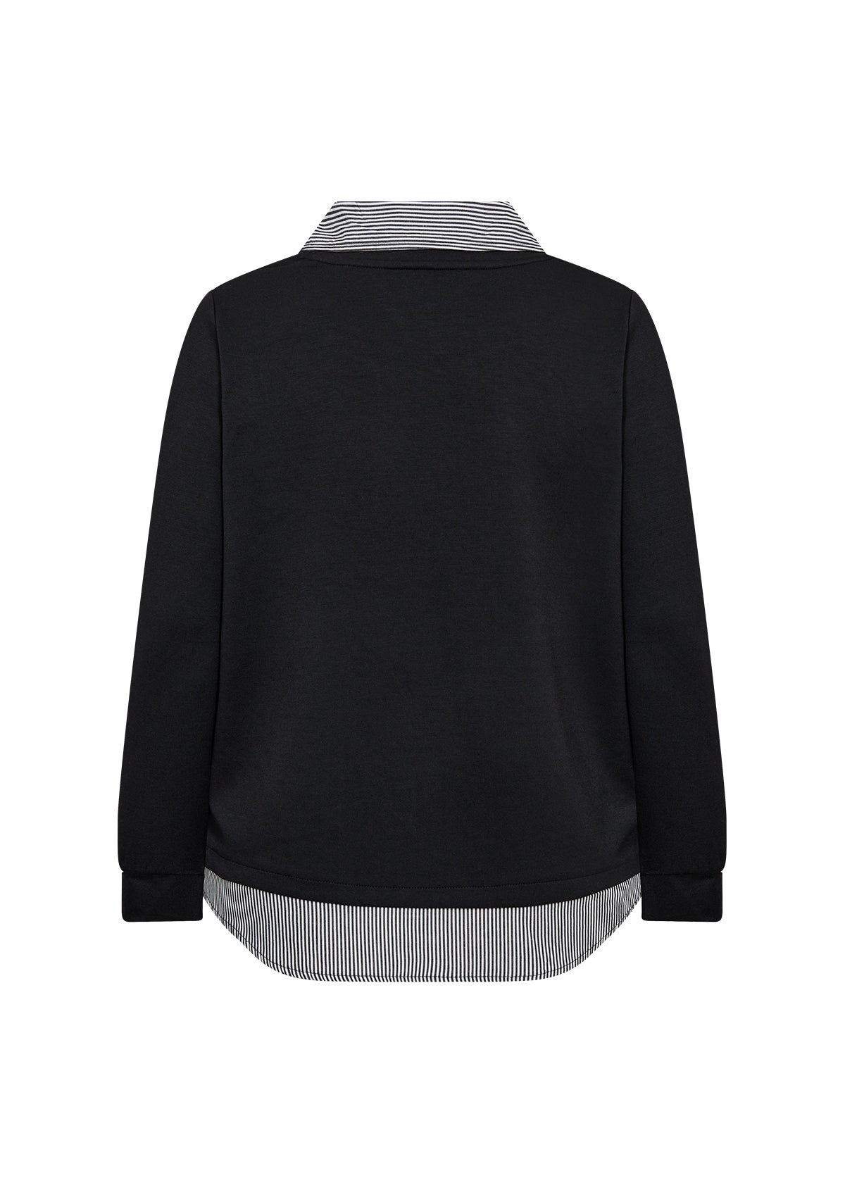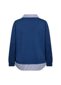 Sweatshirt er fremstillet af 48 % modal, 48 % polyester og 4 % elastan. Den har indbyggede skjortedetaljer med stribet krave og kant. Sæt den sammen med jeans eller bukser for et smart og afslappet look.