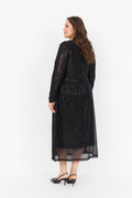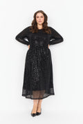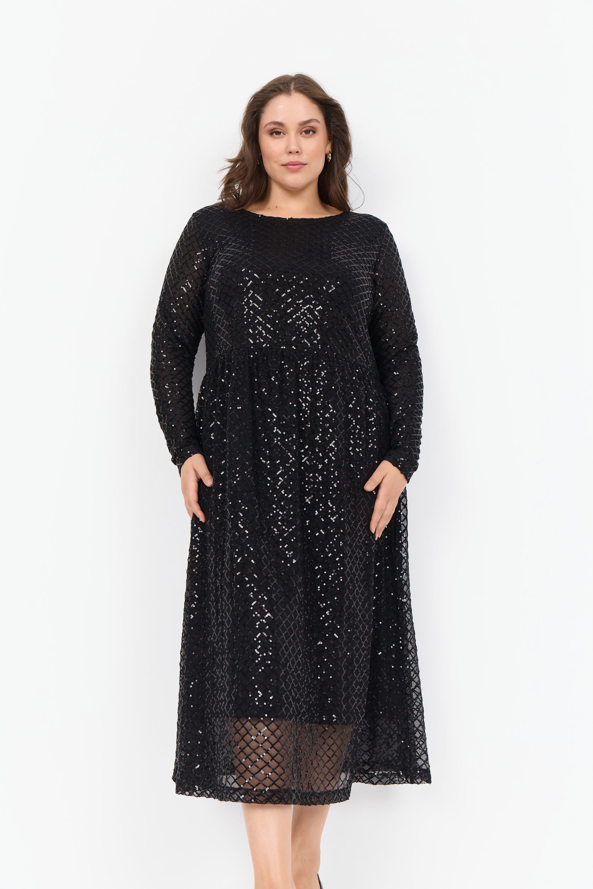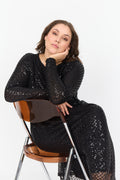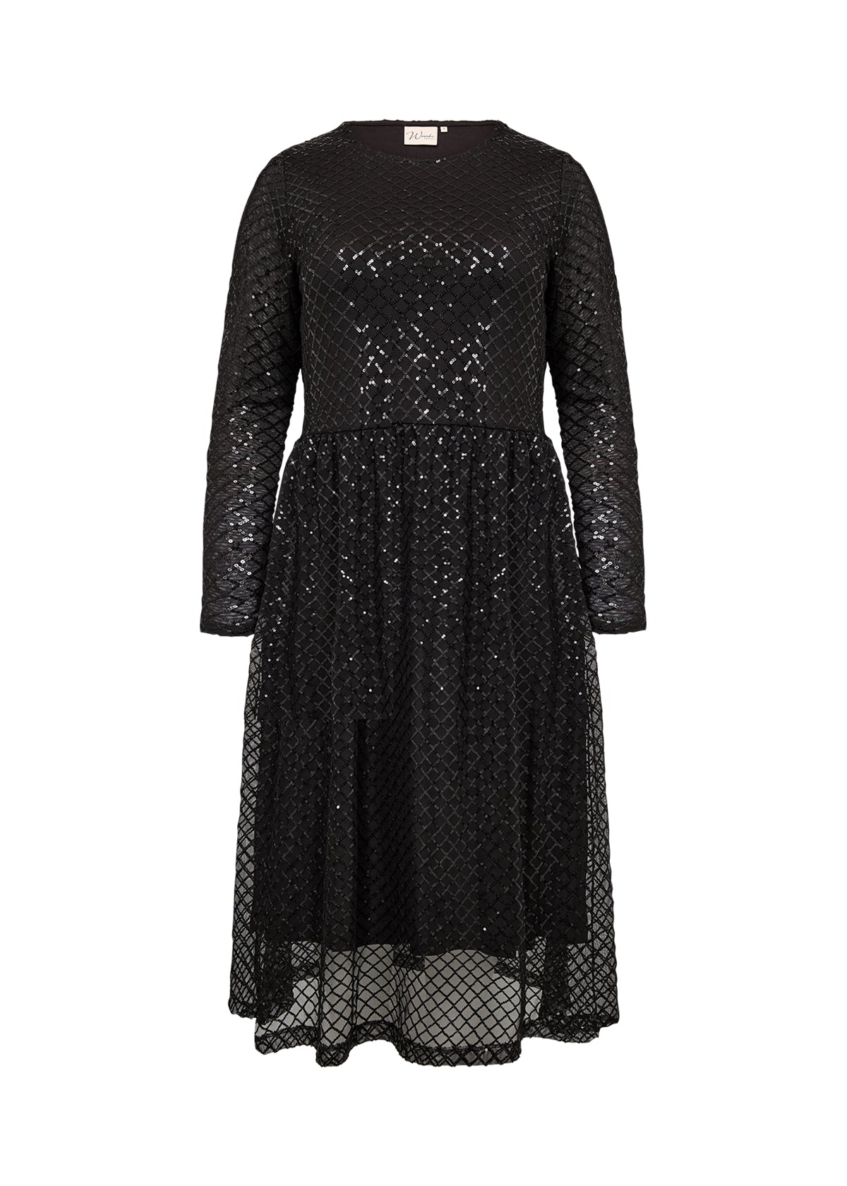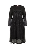 Kjole fremstillet af 95% polyester, 5% elastan. Denne elegante kjole har et struktureret, geometrisk pailletovertræk med lange ærmer og en flatterende rund halsudskæring. Sæt den sammen med statement-smykker og høje hæle for et sofistikeret look.
