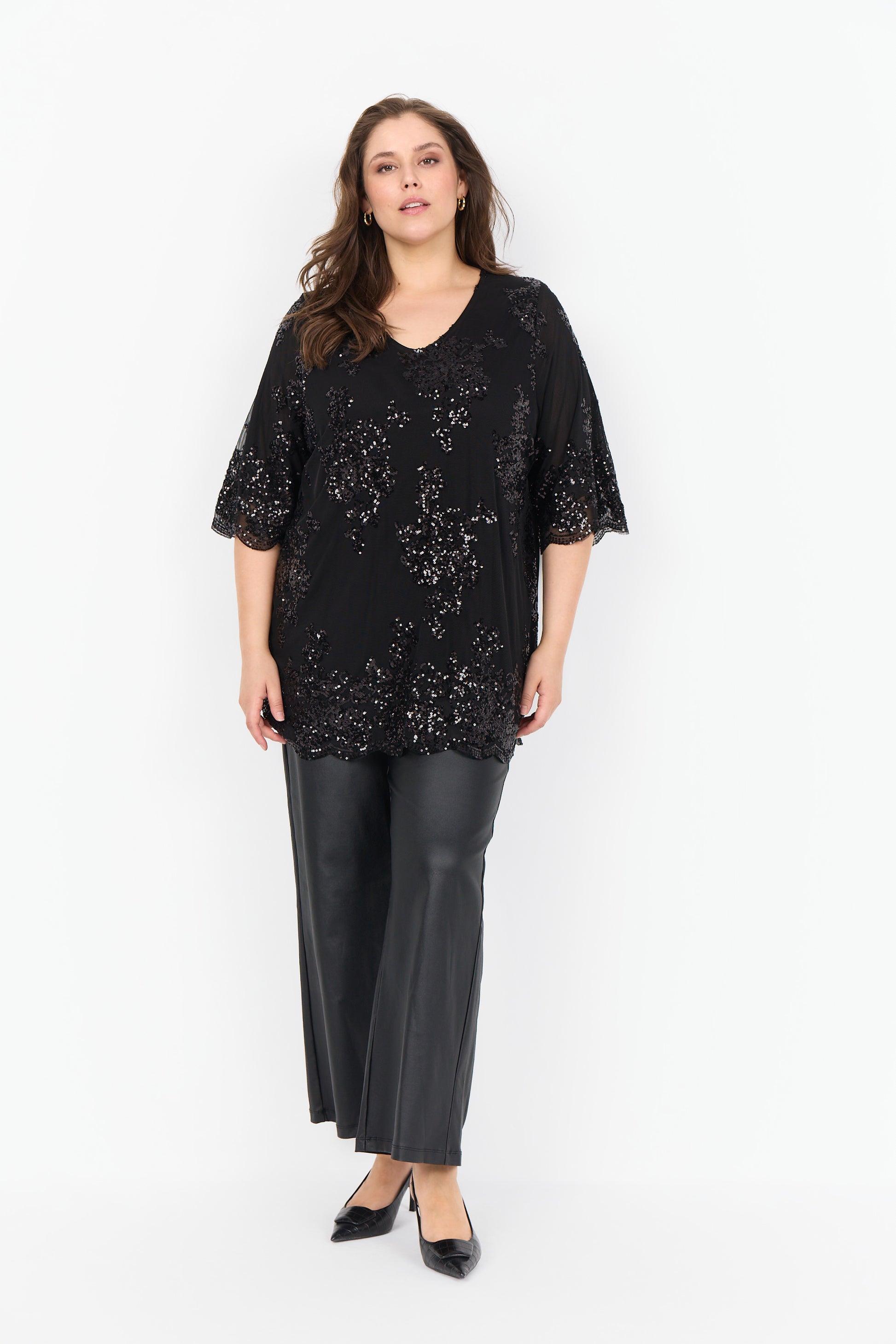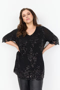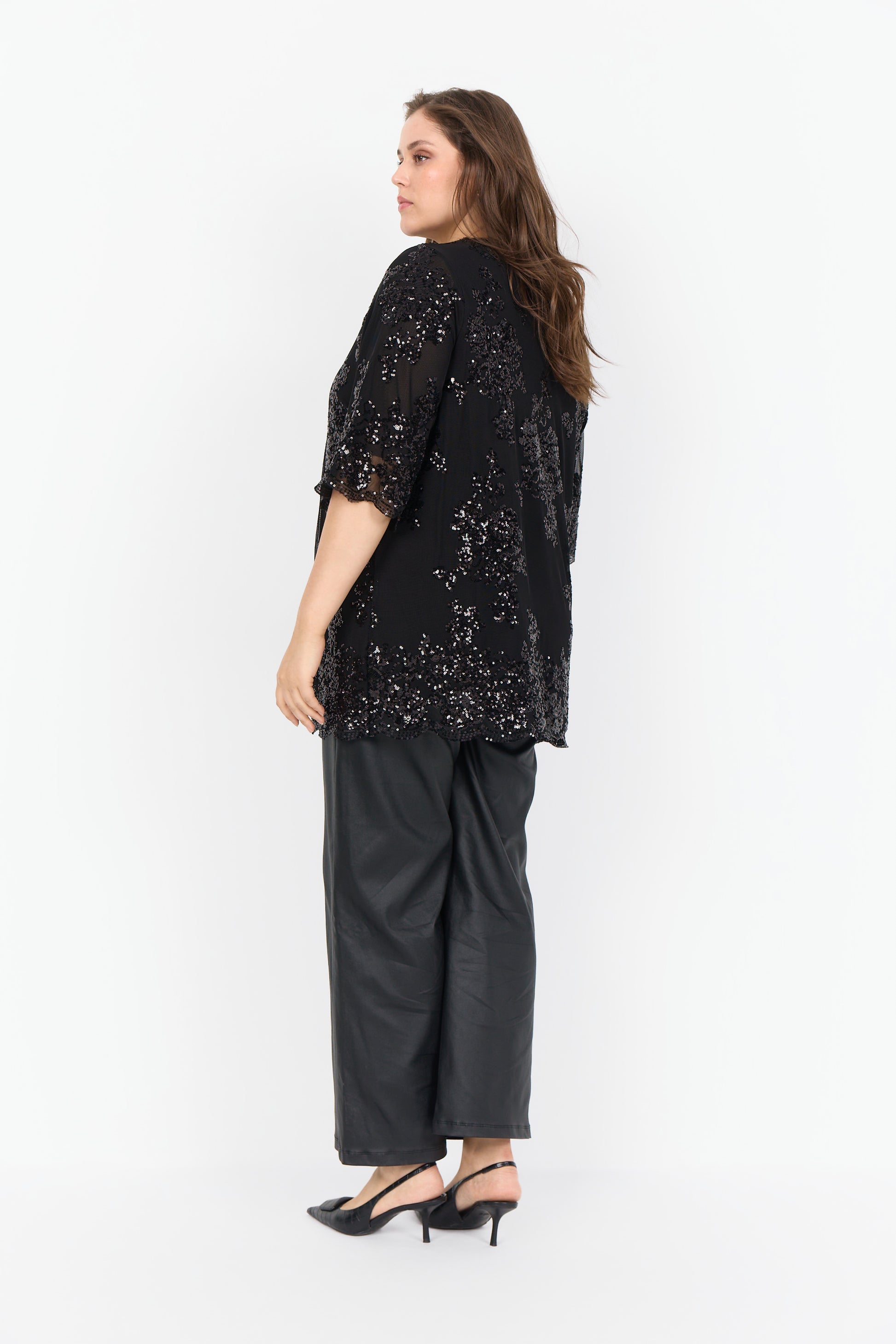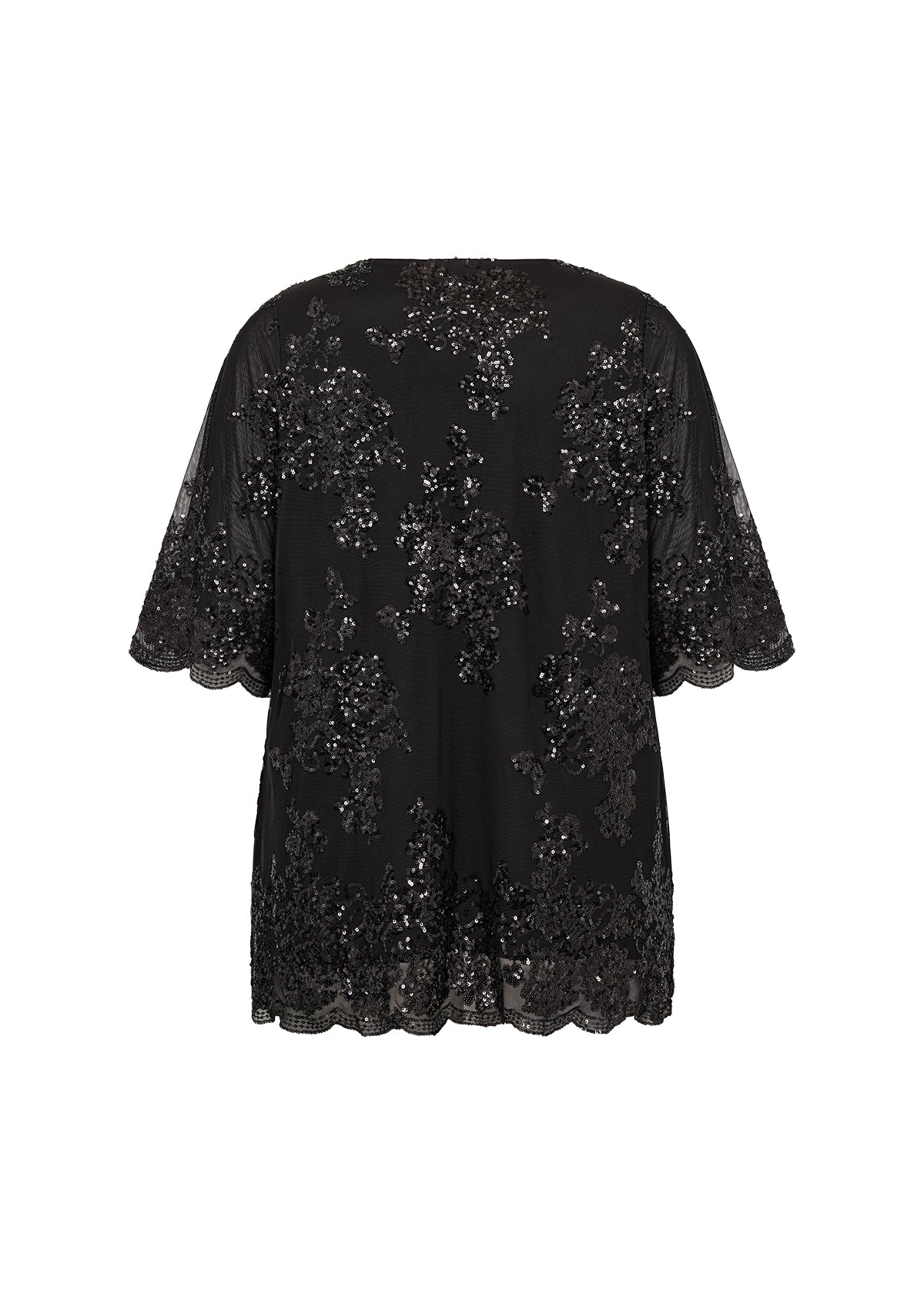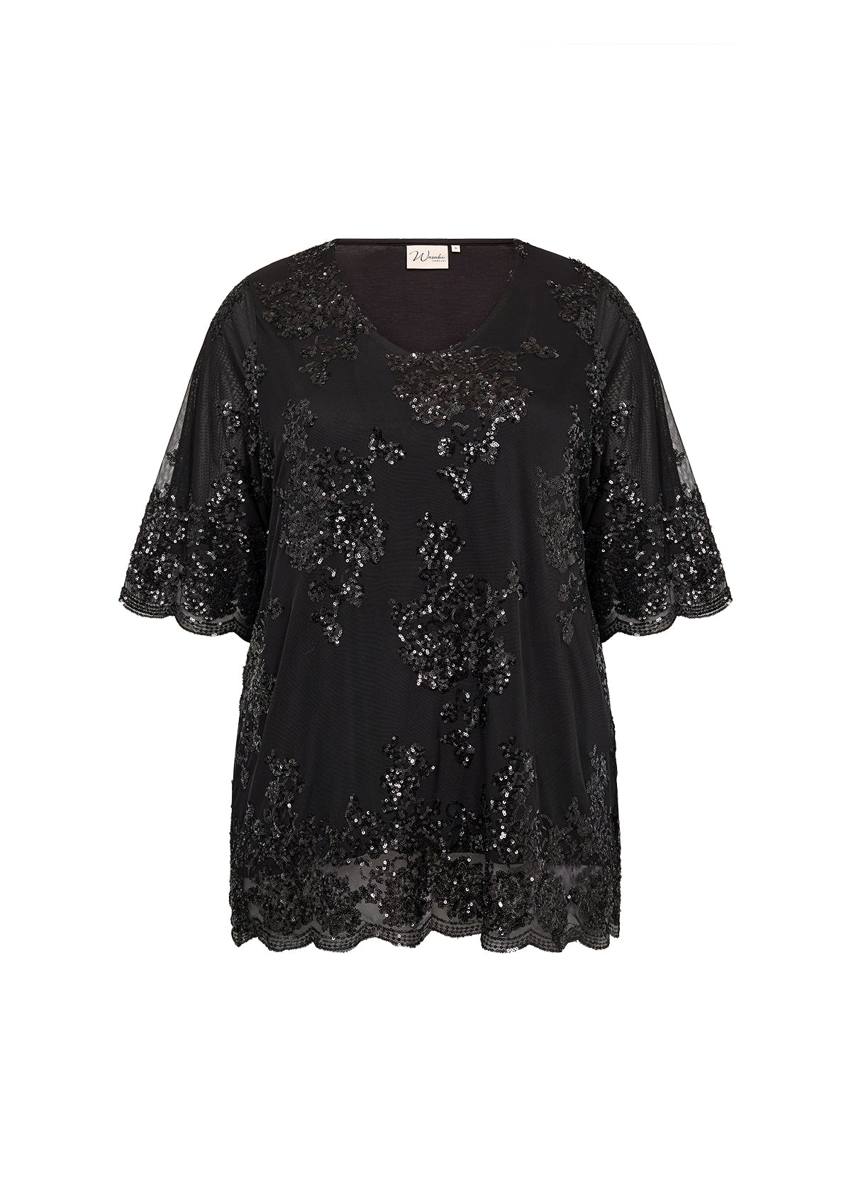 Bluse er fremstillet af 95% polyester, 5% elastan. Denne elegante bluse har korte ærmer, pailletdetaljer, en rund halsudskæring og en afslappet pasform. Sæt den sammen med skræddersyede bukser eller en elegant nederdel for et cool look.