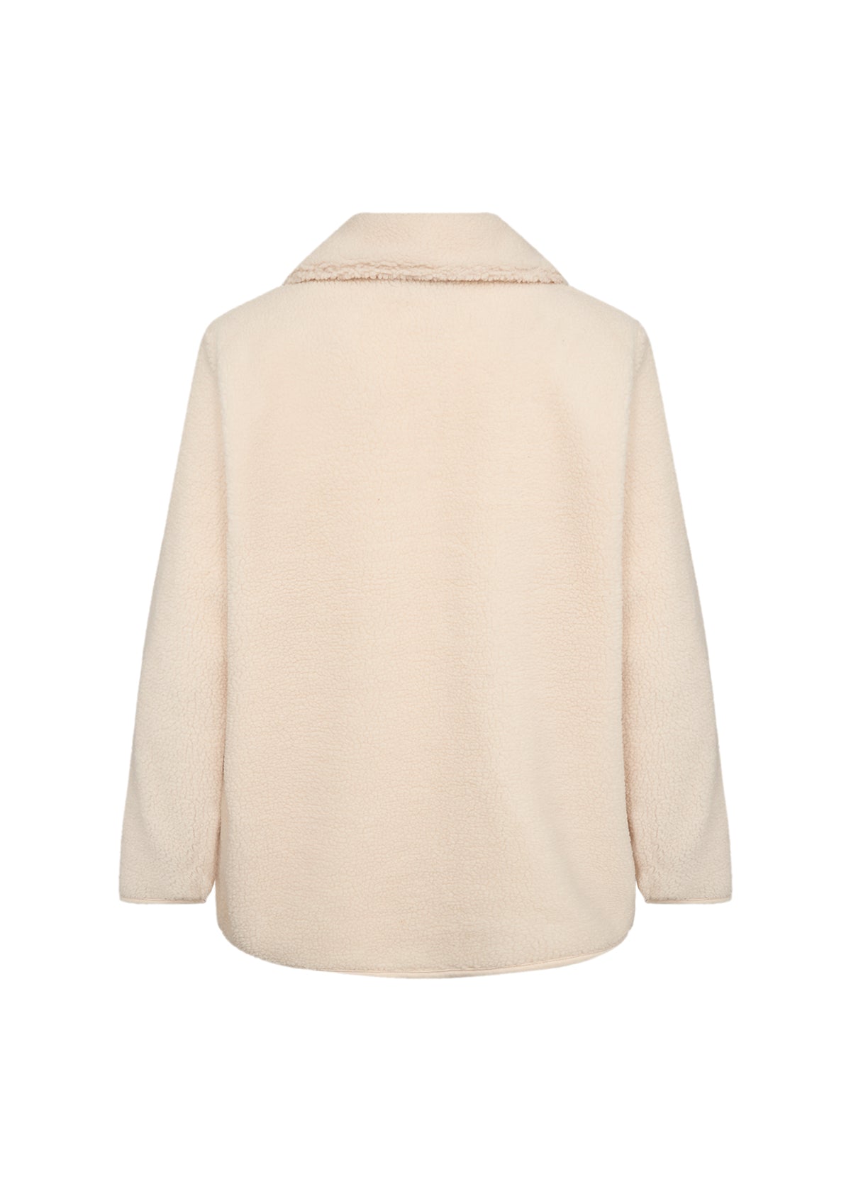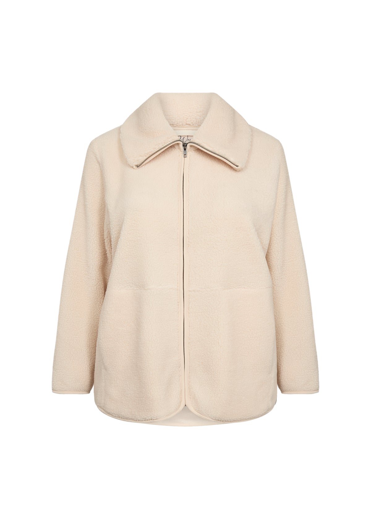 Cardigan/Jakken er fremstillet af 100 % genbrugspolyester. Den har en blød tekstur, bred krave, lynlåslukning og praktiske lommer foran. Sæt den sammen med jeans for et afslappet look, eller tag den over en kjole for ekstra varme.