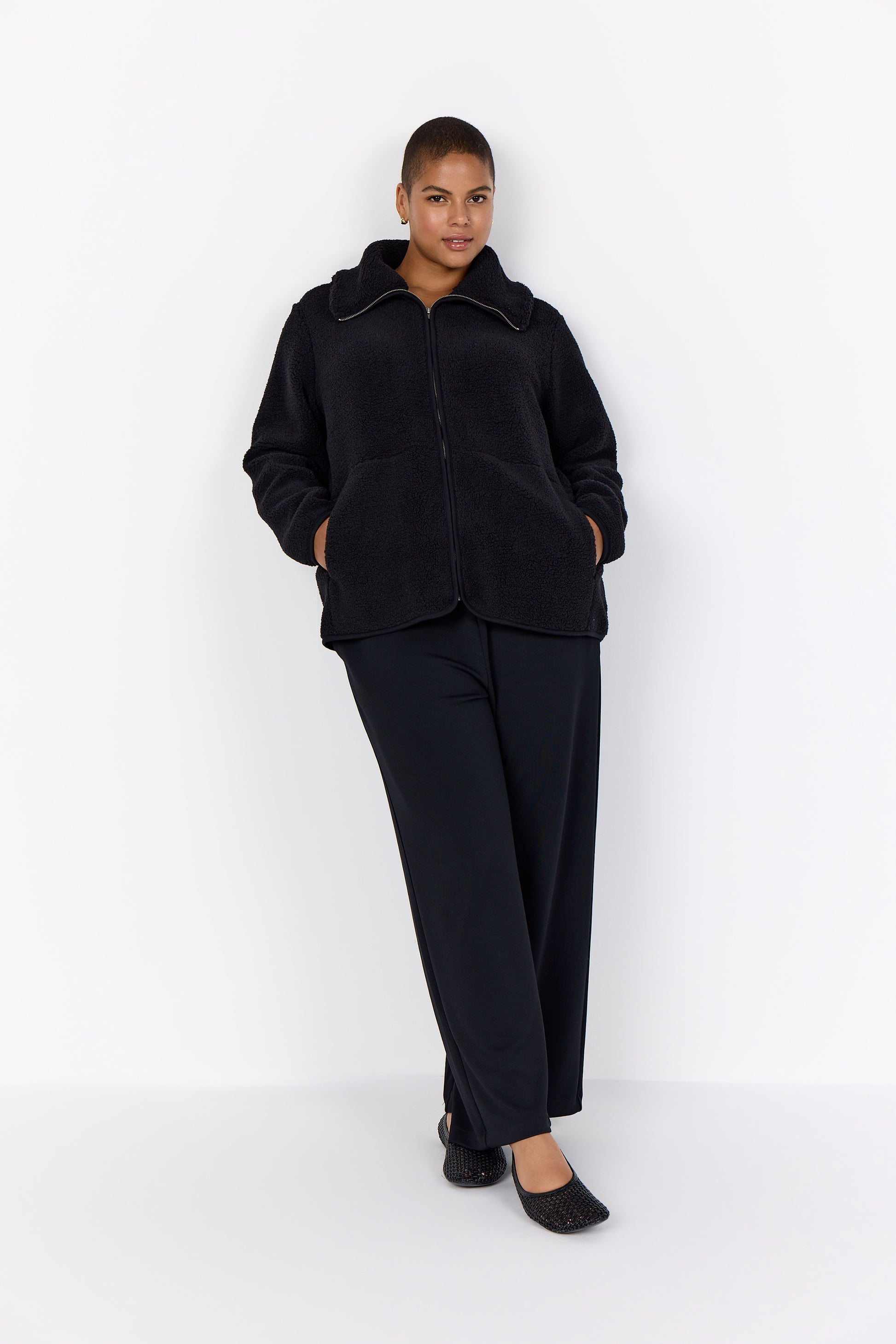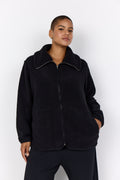 Cardigan er fremstillet af 100 % genbrugspolyester. Den har en blød tekstur, bred krave, lynlåslukning og praktiske lommer foran. Sæt den sammen med jeans for et afslappet look, eller tag den over en kjole for ekstra varme.