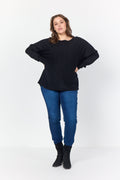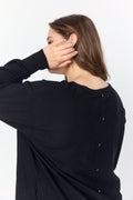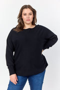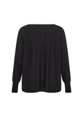 feminin bluse fremstillet af LENZING™ ECOVERO™ viskose og polyamid. Blusen har en bådhals, lange ærmer med høje manchetter, en løs pasform, en buet kant og en knapstolpe bagpå. Style denne unikke bluse med et par habitbukser og et par støvletter for et sofistikeret look.
