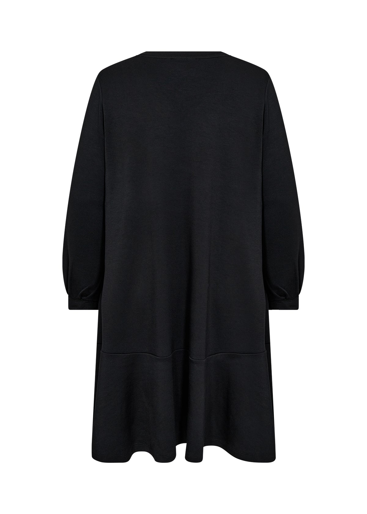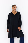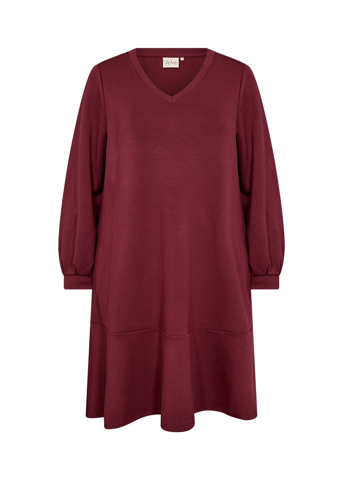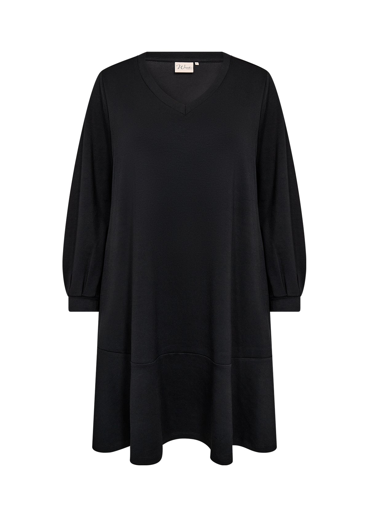kjole er fremstillet af 48% modal, 48% polyester og 4% elastan. Den har V-udskæring, lange ærmer og en flydende silhuet. Sæt den sammen med dine yndlingssneakers for et afslappet look, eller pift den op med høje hæle.